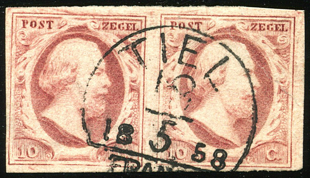 C type I (de H/S 50) op 10 cent nr. 2g-Pl.IV-28/29. Prachtpaar met bijzonder mooie, centrale afst. (Image)