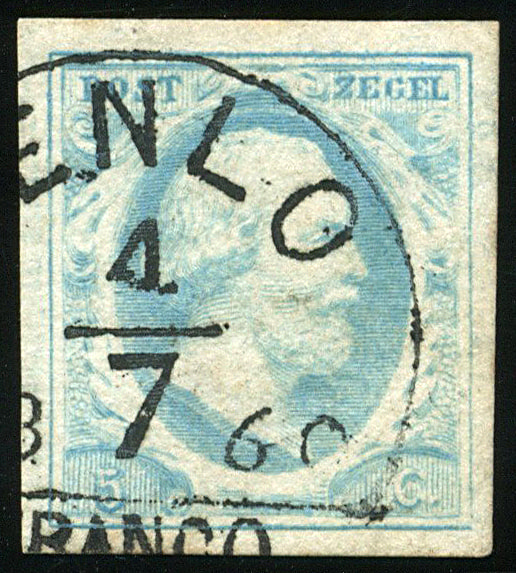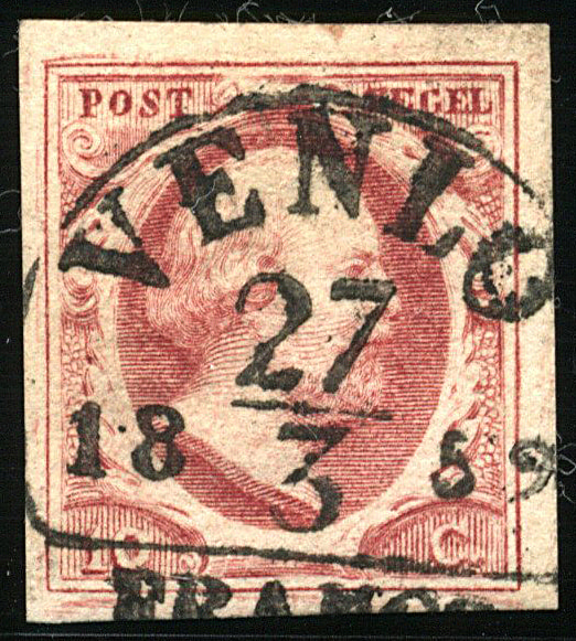 VENLO C (de H/S R) op 15 cent. Prachtex. met vlijmscherpe, halve afdruk van dit op deze waarde zeldzame stempel (Image)