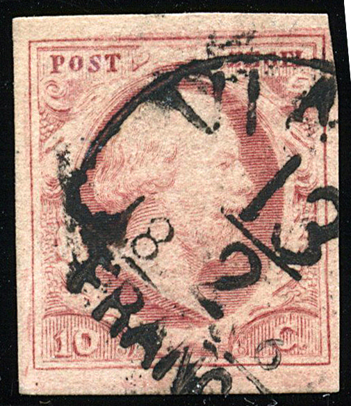VIANEN C (de H/S RRR) op 15 cent nr. 3b, pos. 79. Mooi gerande zegel met als Vianen C herkenbare afst. maar niet te bepalen of het type I of II is. Van dit op deze waarde extreem zeldzame stempel is nauwelijks een betere afdruk bekend.