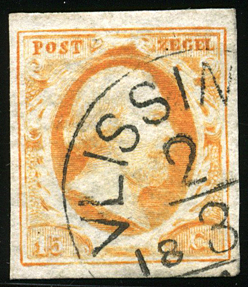 VLISSINGEN C type I (de H/S R) op 15 cent nr. 3c, pos. 26. Prachtex. met zeer scherpe, mooie afdruk van dit op deze waarde zeldzame stempel. Hierbij is het kenmerk van type I vooral te zien aan de 18 (Image)