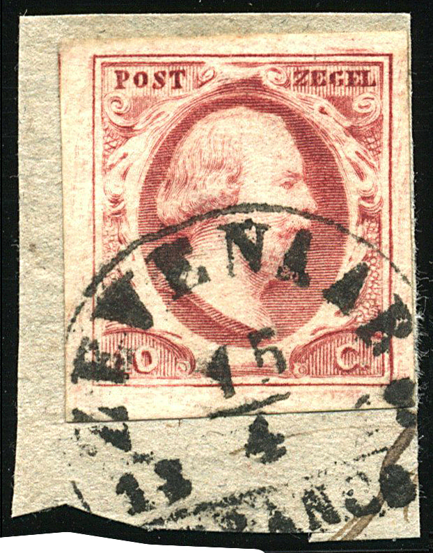 ZEVENAAR B (de H/S 125) op 10 cent nr. 2g-Pl.IV-7. Breed gerand prachtex. op briefstukje waarop mooie afst. (Image)