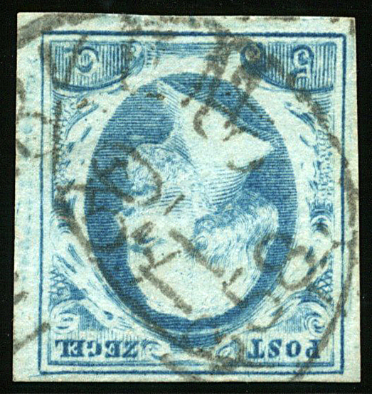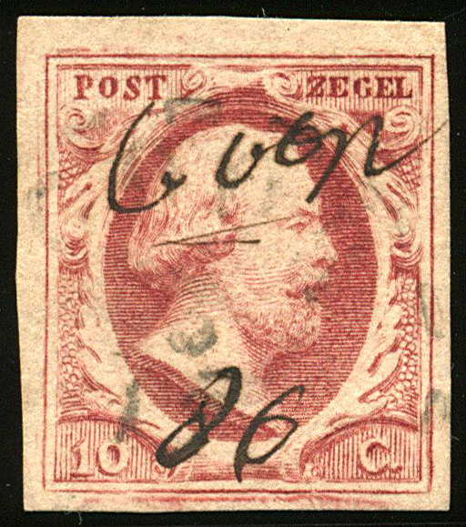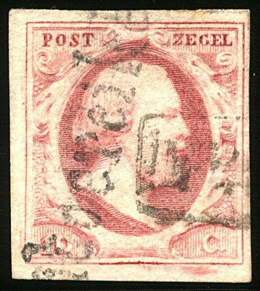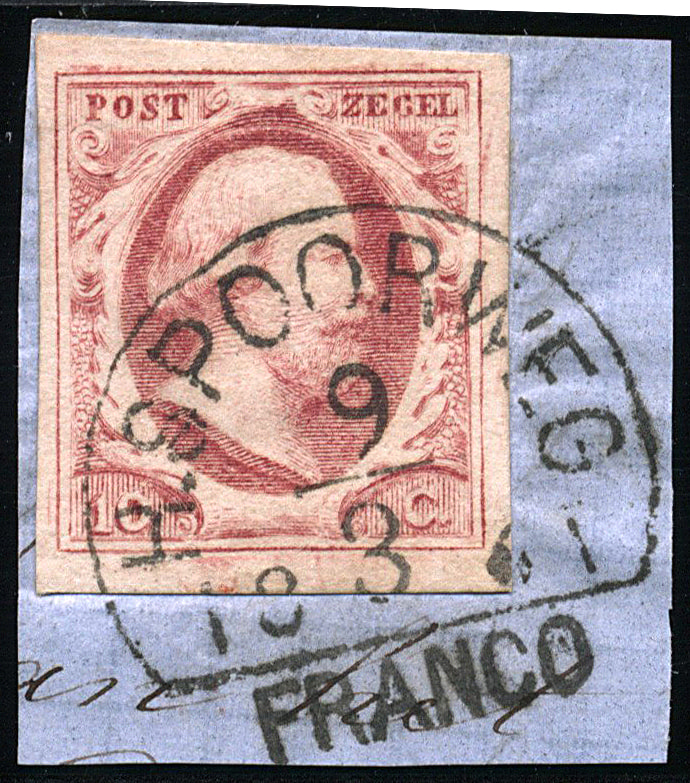 981 o imageZWOLLE C type II (de H/S RRR) op 15 cent nr. 3c, pos. 26. Hoekzegel met drie zeer brede randen, onder smal, rechts loeprand, met volledige afdruk van 23-2-1858 van dit op de 15 cent uitermate zeldzame stempel. Misschien wel de mooist bekende! Ondanks smalle onderrand, gecompenseerd door drie zeer brede randen, een begerenswaardige rariteit! (Image)