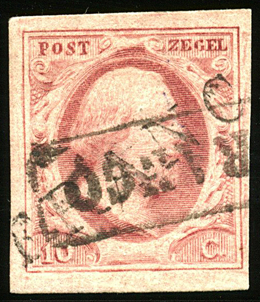 DOMBURG (EY.RR) op 10 cent nr. 2h-Pl.V-75. Rechts loeprand, overigens prima gerande zegel met grootste deel van dit op de 10 cent wellicht unieke stempel