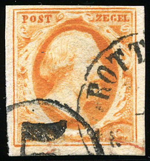 KRIMPEN (a. Y.) (EY.R) op 5 cent nr. 1i-Pl.III-64. Prachtig gerande zegel met diagonale, op de eerste letter K na een volledige afst. Zeldzaam!
