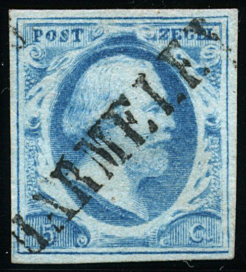 Buitenlandse stempels. Duits transitstempel Franco, tezamen met Franco in kader, op 15 cent nr. 3d. Randstuk, links onder net niet aangesneden, overigens breed tot zeer breed gerand, met duidelijke afst. (Image)