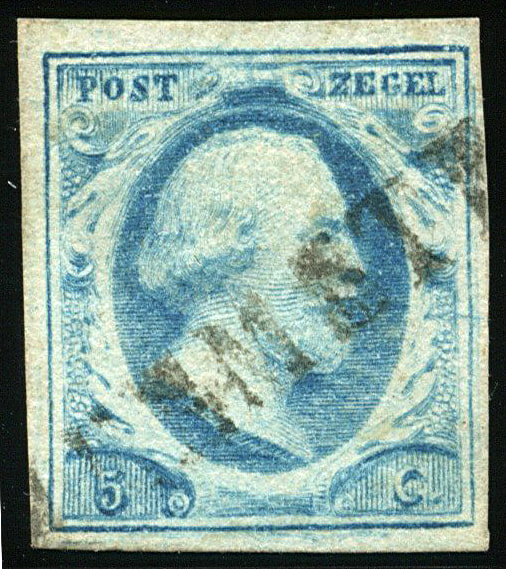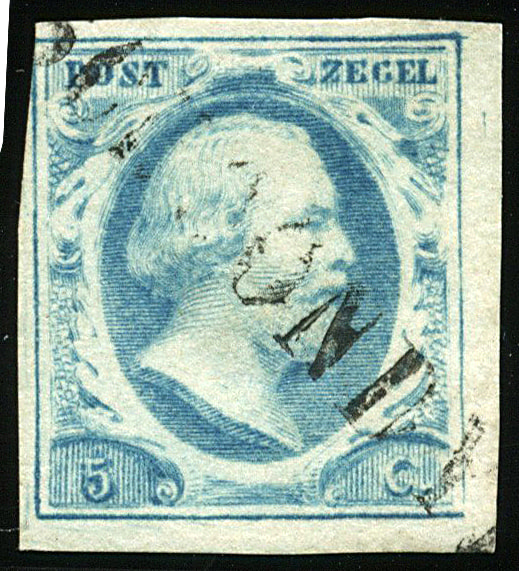 GORREDYK (EY.100) op 5 cent nr. 1a-Pl.I-31. Vol tot breed gerand prachtex. met vrijwel volledige, ideale afst. Zeldzaam op nr. 1a. Klein attest Vleeming (2022)