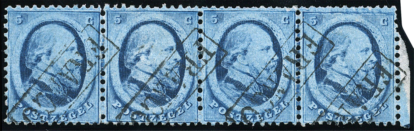 1103 o image4BII, 5 cent plaat II pos. 47-50, prachtstrip van vier. € 250 (Image)