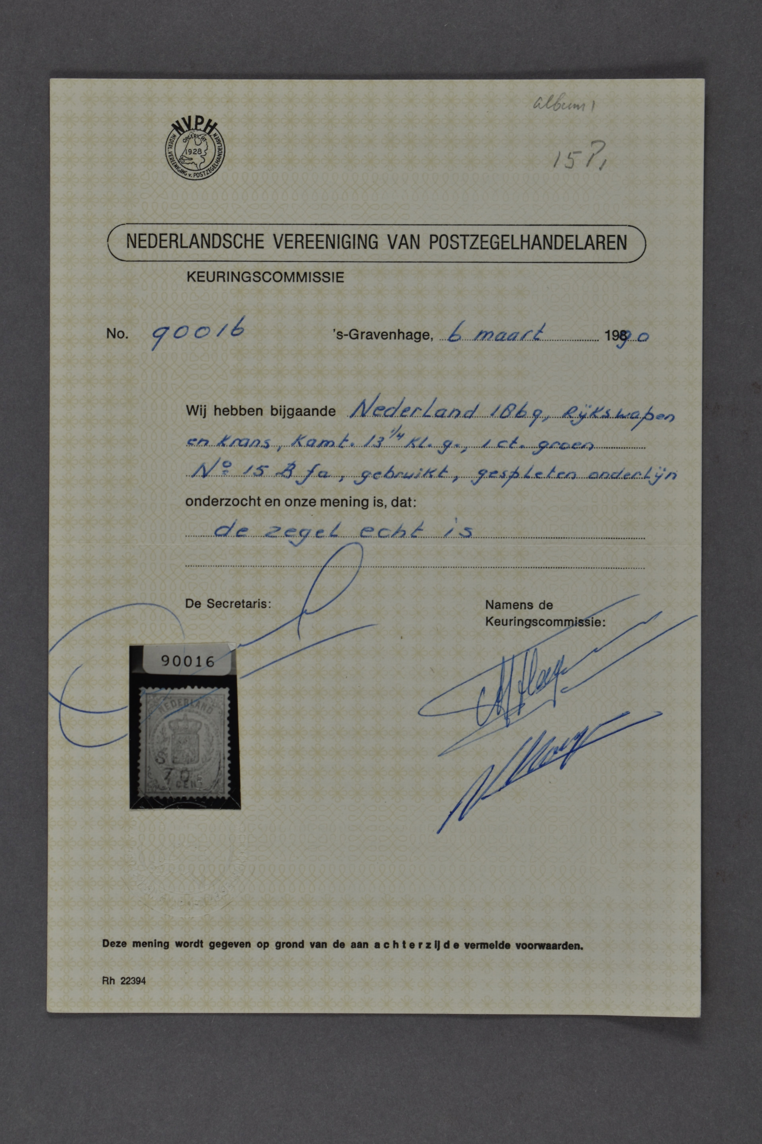 16B, 1½ cent roze, Kt. 13¼ kl.g., postfris prachtex. met certificaat Muis (2008) € 2500 (Image) (Image2)