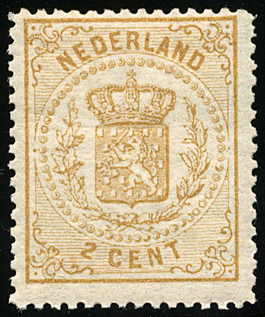 17A, Wapenzegel, 2 cent bruingeel, Lt. 14 kl.g., postfris prachtex. met klein attest Vleeming (2025) € 600 (Image) (Image2)