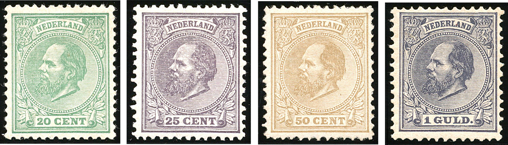 19/28, 5 cent t/m 1 gulden Willem III, emissie 1872, ongebruikte prachtex., waarbij vrijwel postfris! € 5945 (Image)