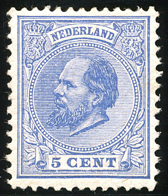 19K, 5 cent blauw, Kt. 12½ kl.g., postfris, vrijwel prachtex. € 400 (Image)