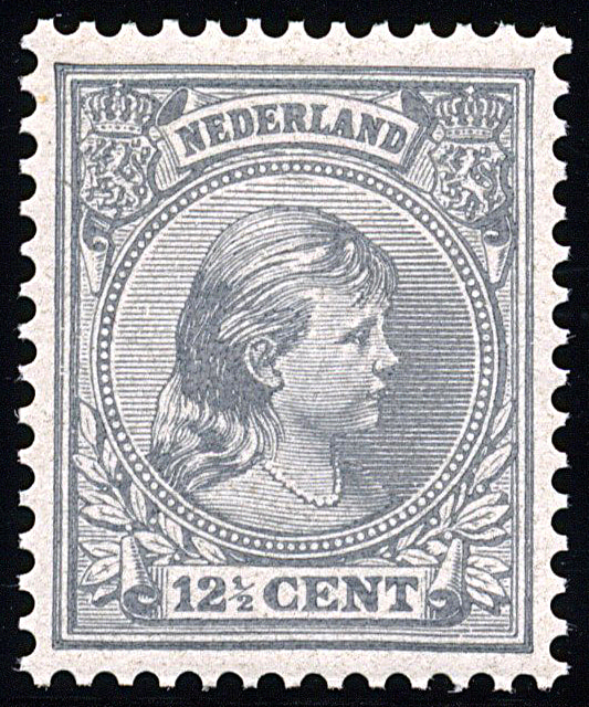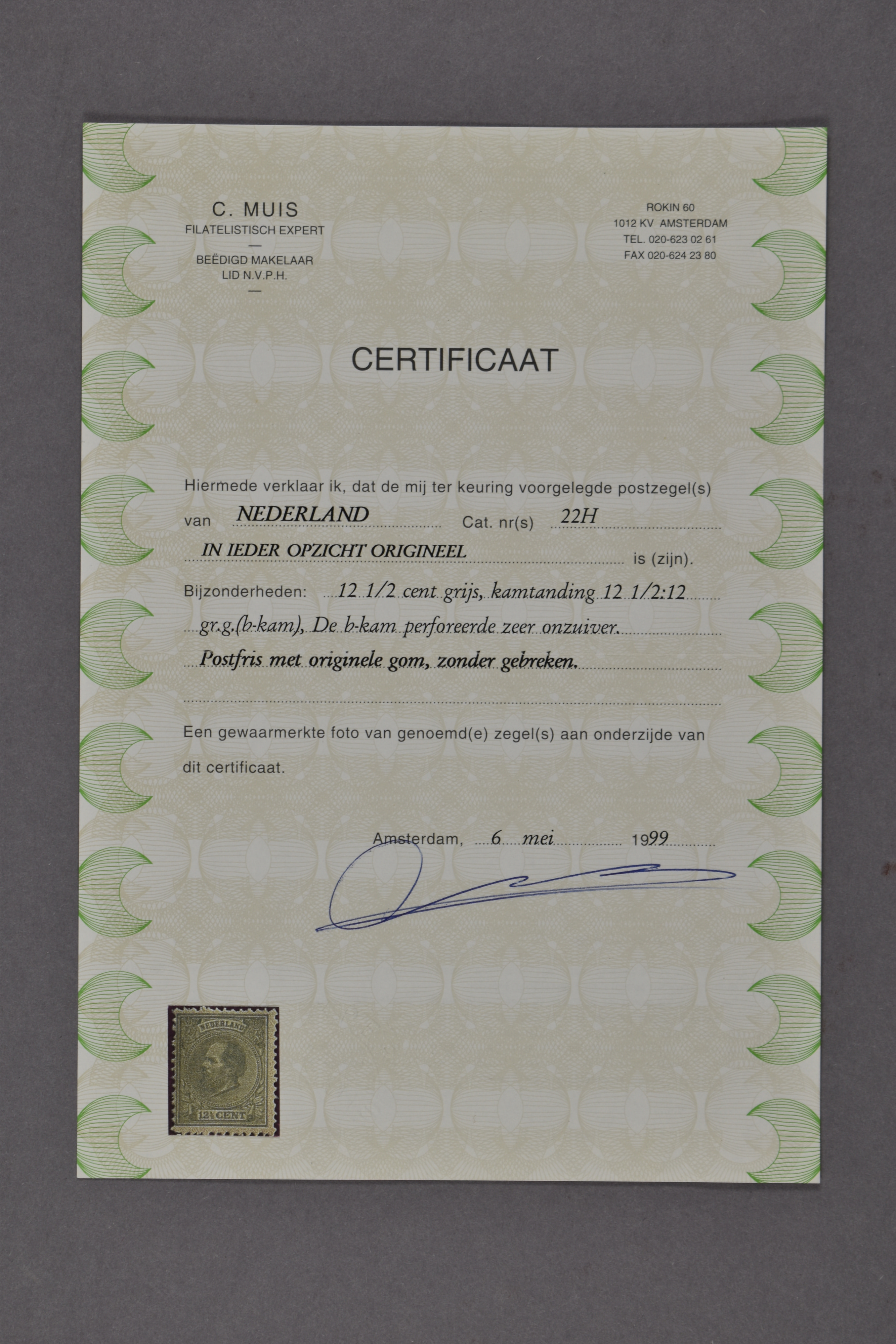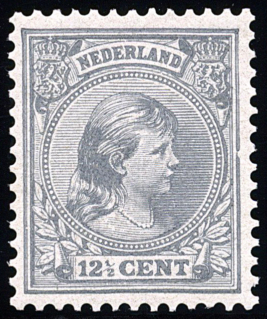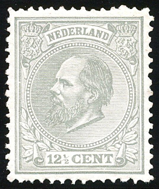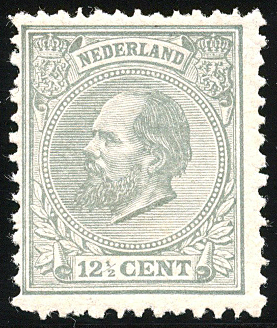 22H, 12½ cent grijs, Kt. 12½ x 12 gr. g. (b-kam), postfris prachtex, met certificaat Muis (1999) € 600 (Image) (Image2)