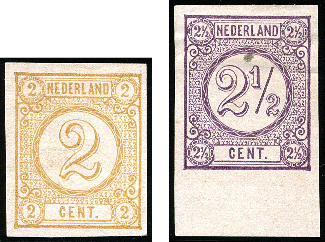 29, 2½ gulden rood en blauw, ongebruikt, gaaf getand prachtex. met volledige originele gom. € 1500 (Image)