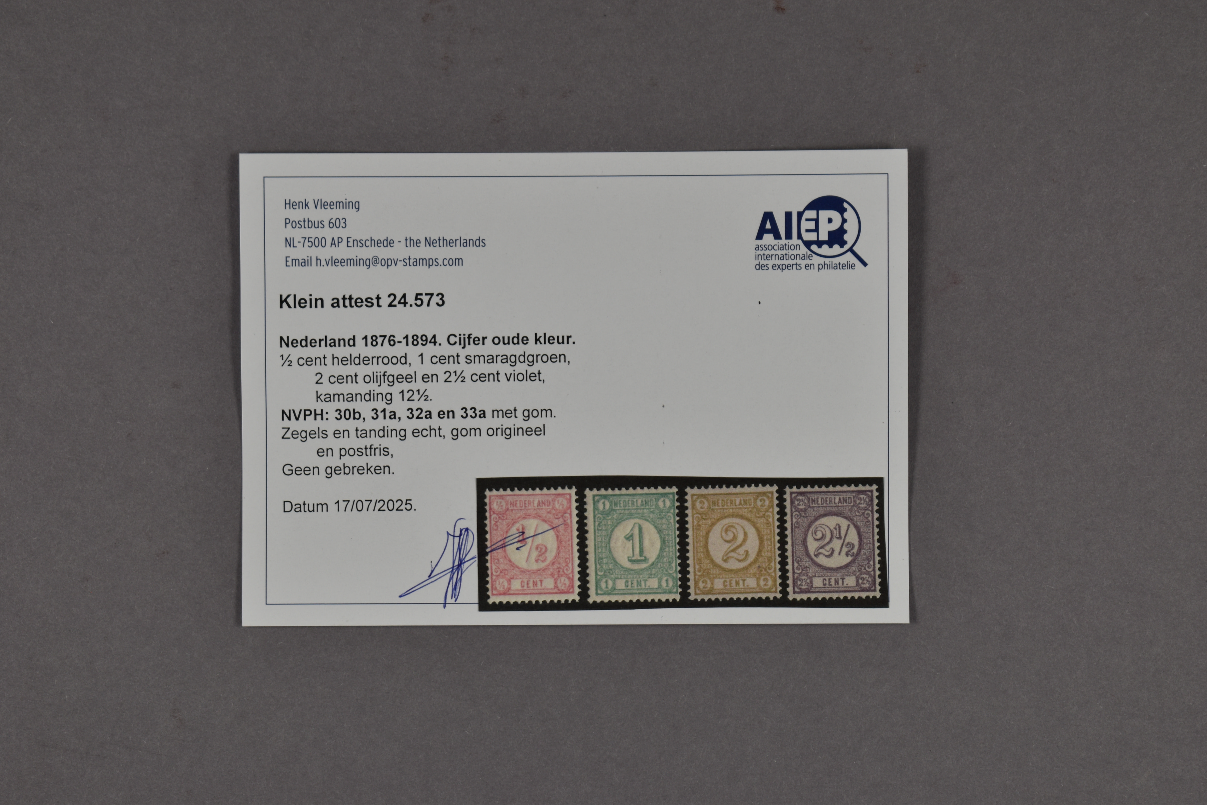 30b/33a, Cijfer 1894, postfrisse prachtex. met attest Vleeming (2025) € 400 (Image) (Image2)