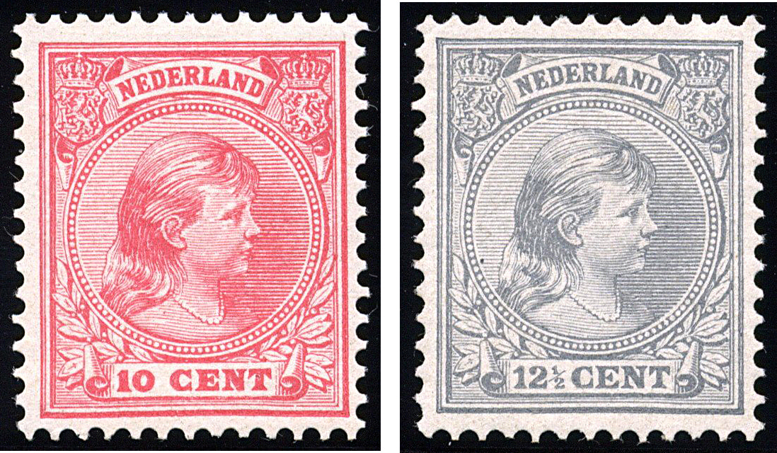 34/38, 3, 5, 7½, 10 en 12½ cent Wilhelmina met hangend haar, postfrisse prachtex. € 585 (Image)