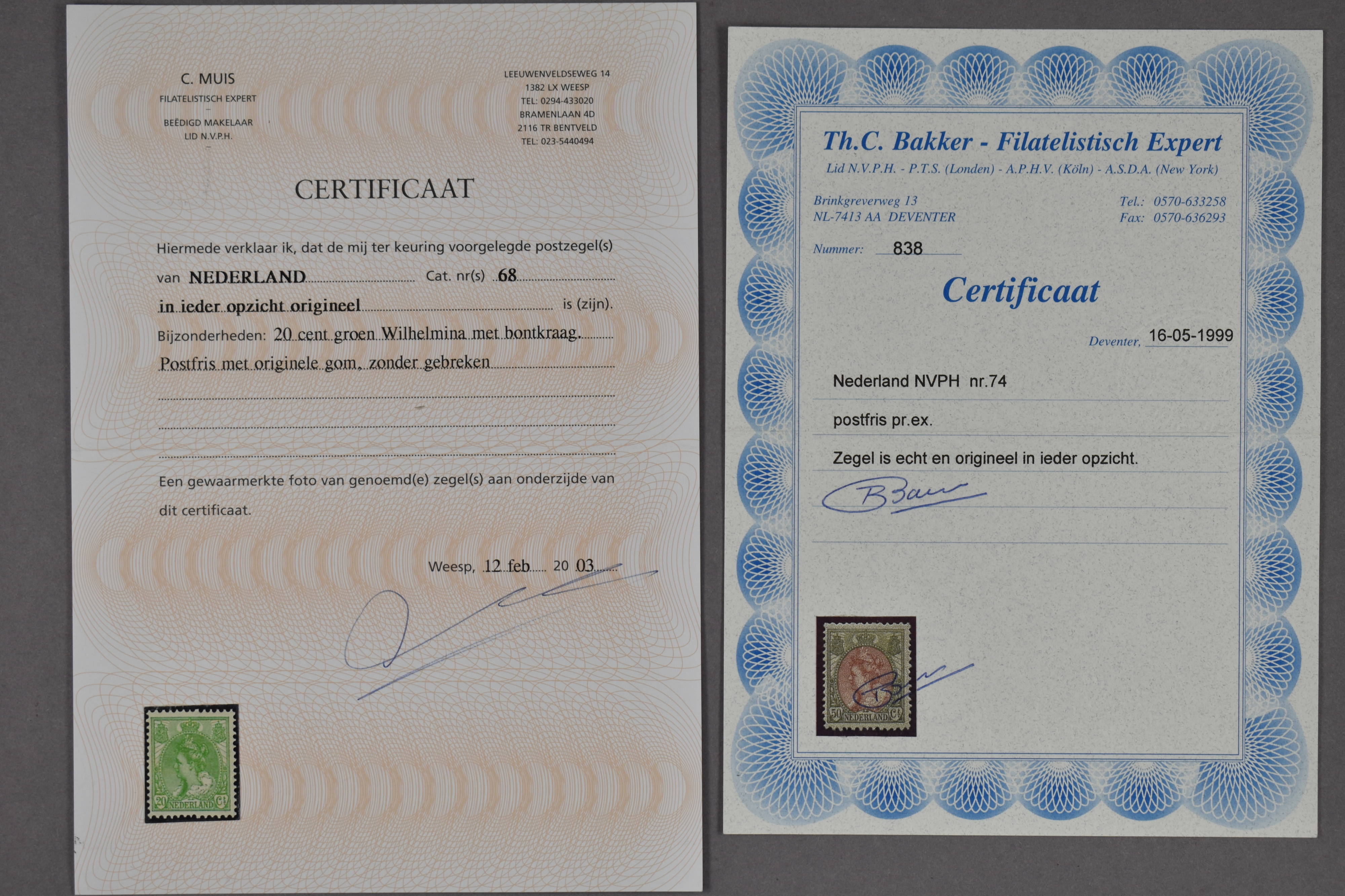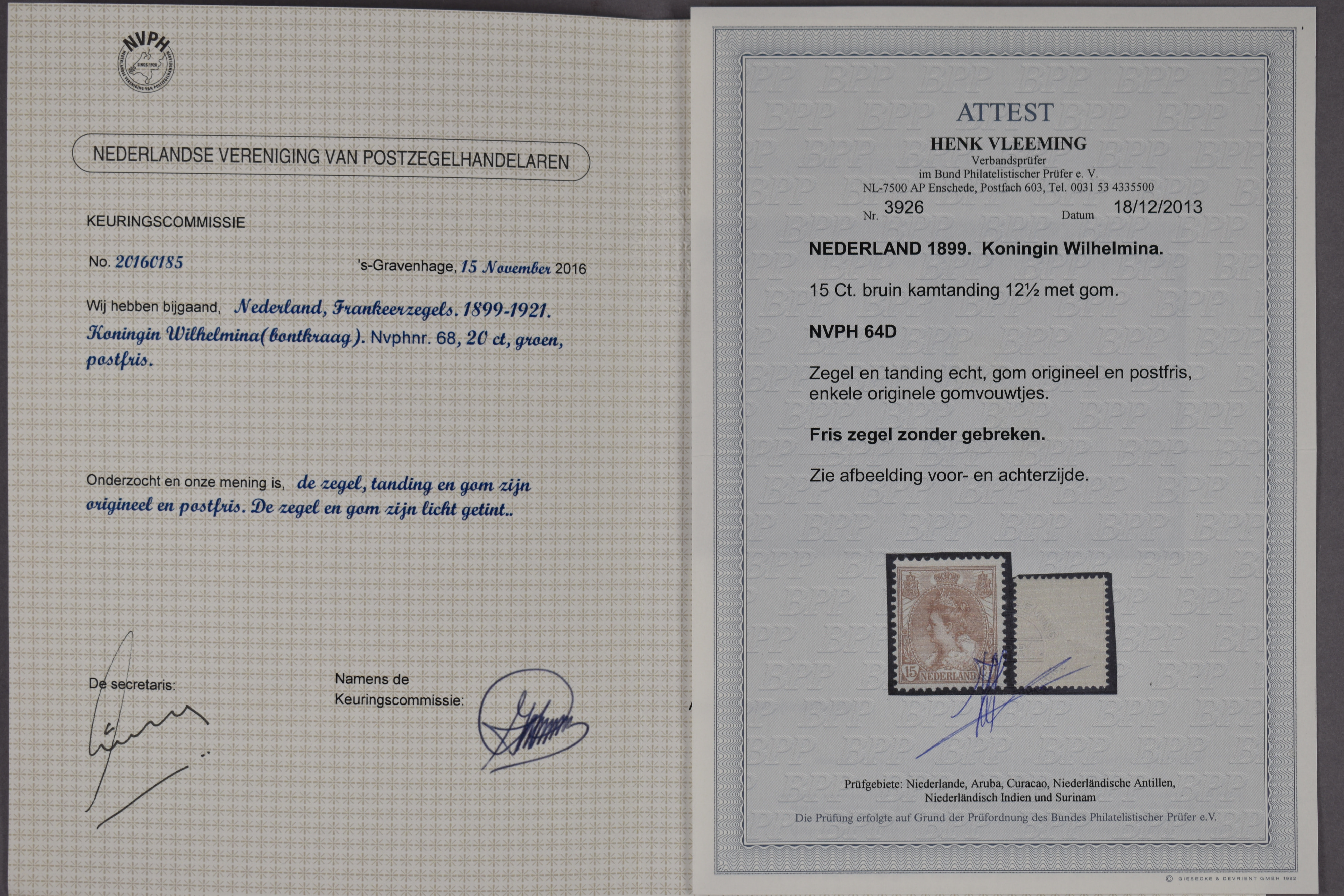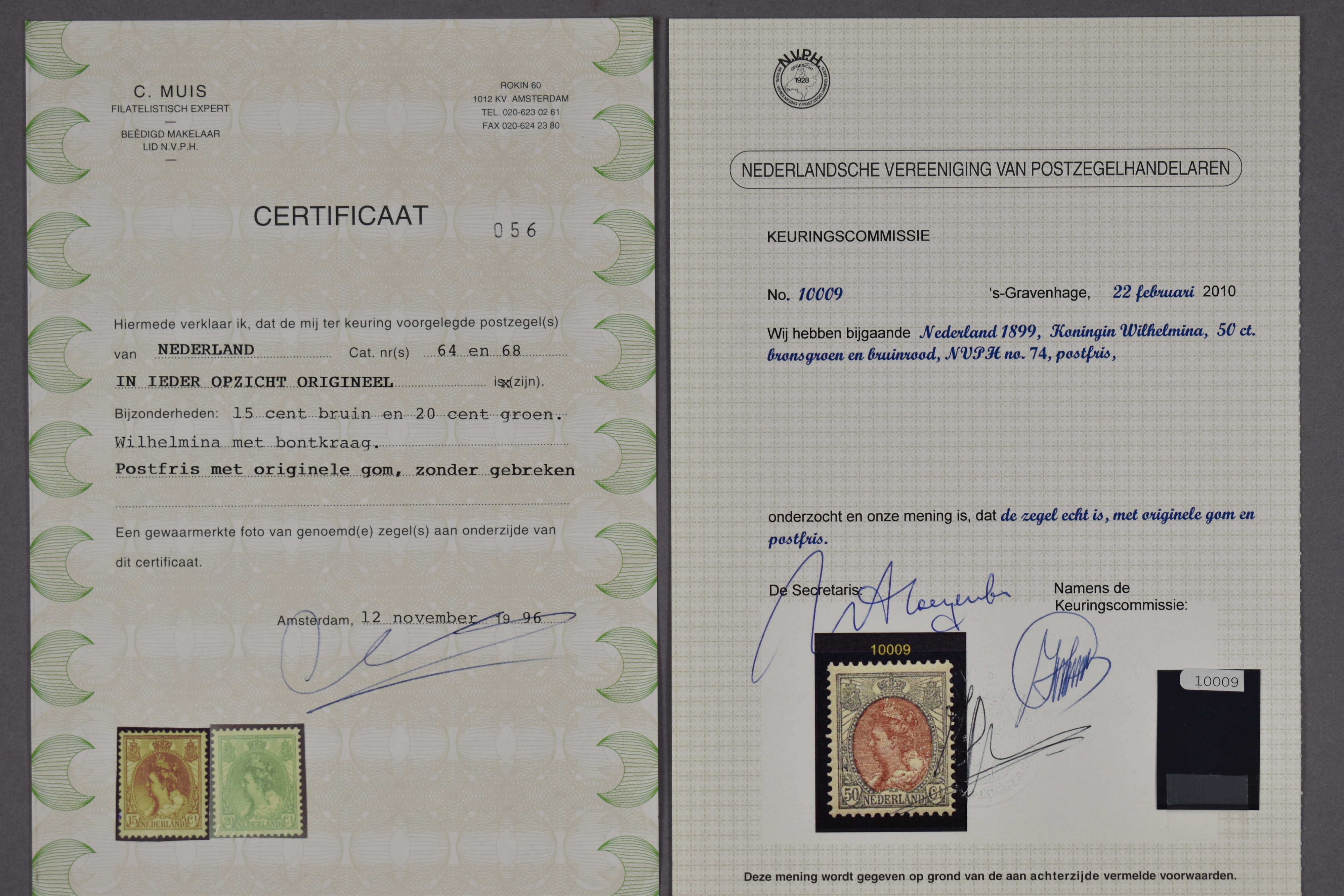 56/76, Koningin Wilhelmina met bontkraag 3 cent t/m 60 cent, postfrisse prachtserie, de 15 en 20 cent met certificaat Muis (1996) en de 50 cent met certificaat NVPH (2010) € 3960 (Image) (Image2)