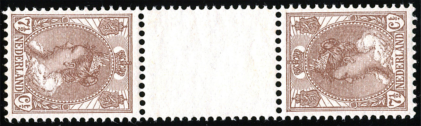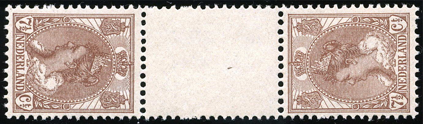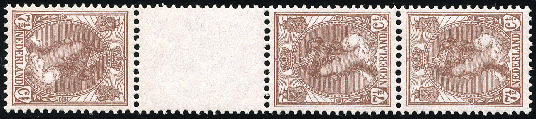 61b/61c, 7½ cent bruin in keerdrukken zonder- en met tussenstrook, postfrisse prachtex. met certificaat Muis (1986) € 1000 (Image) (Image2)