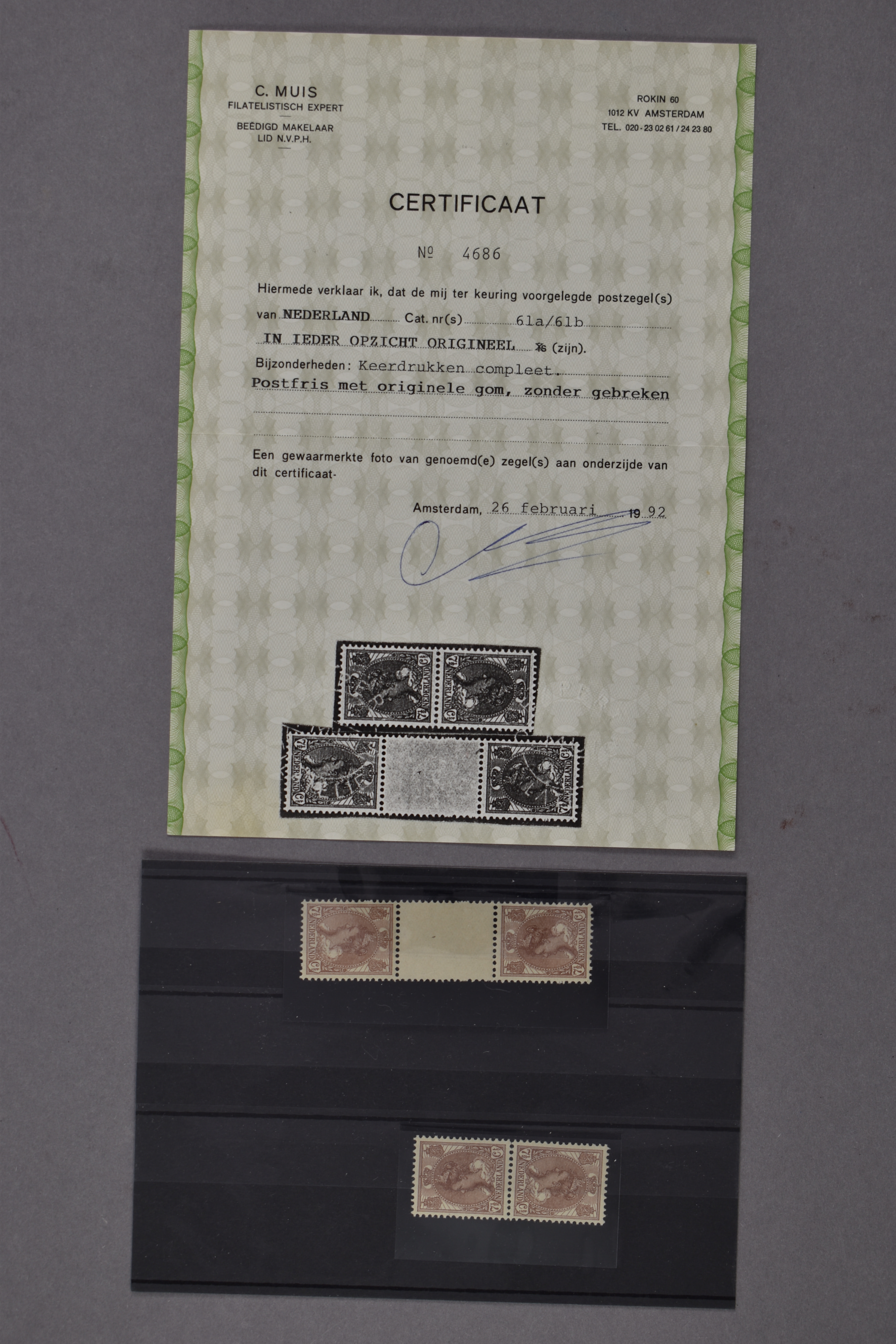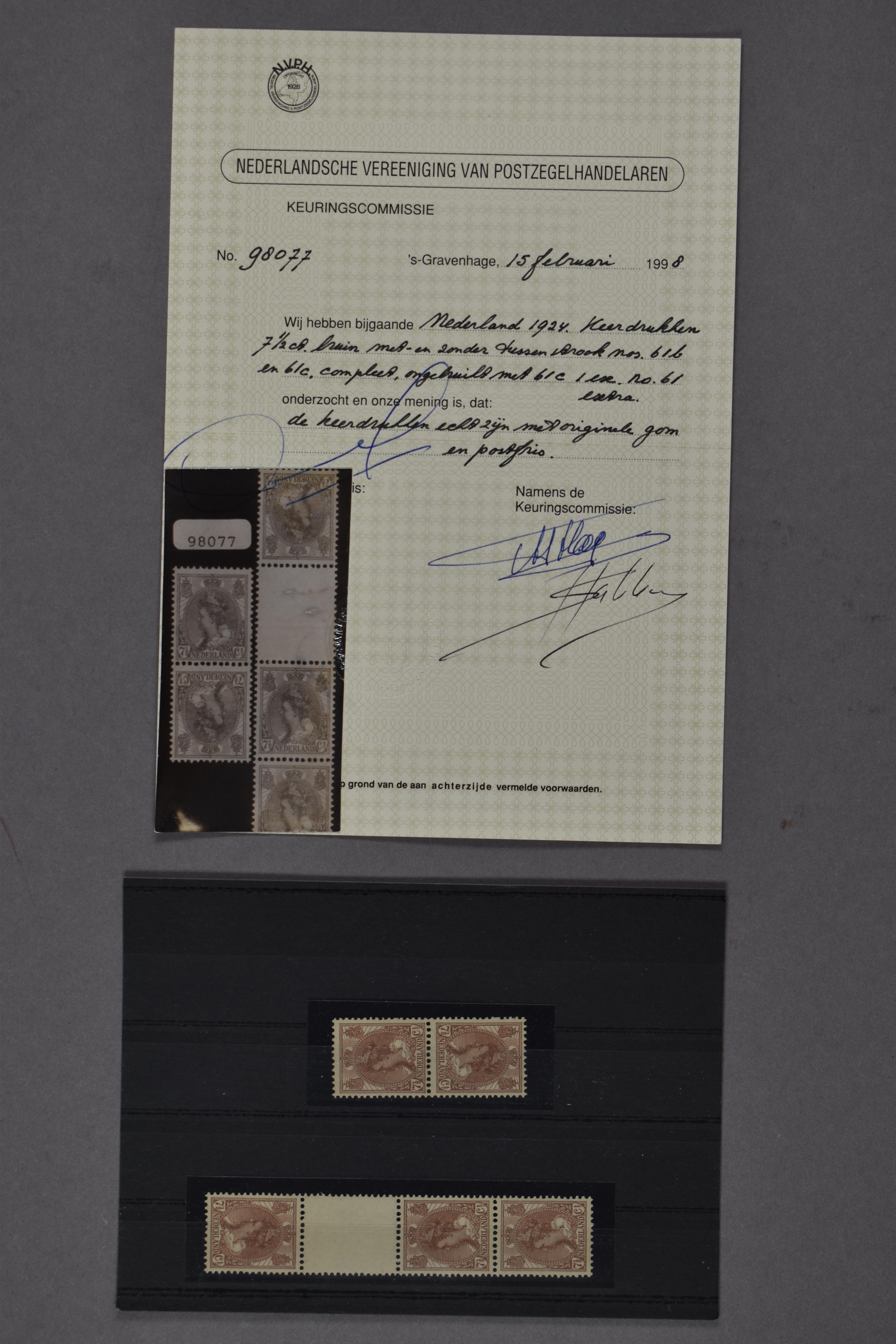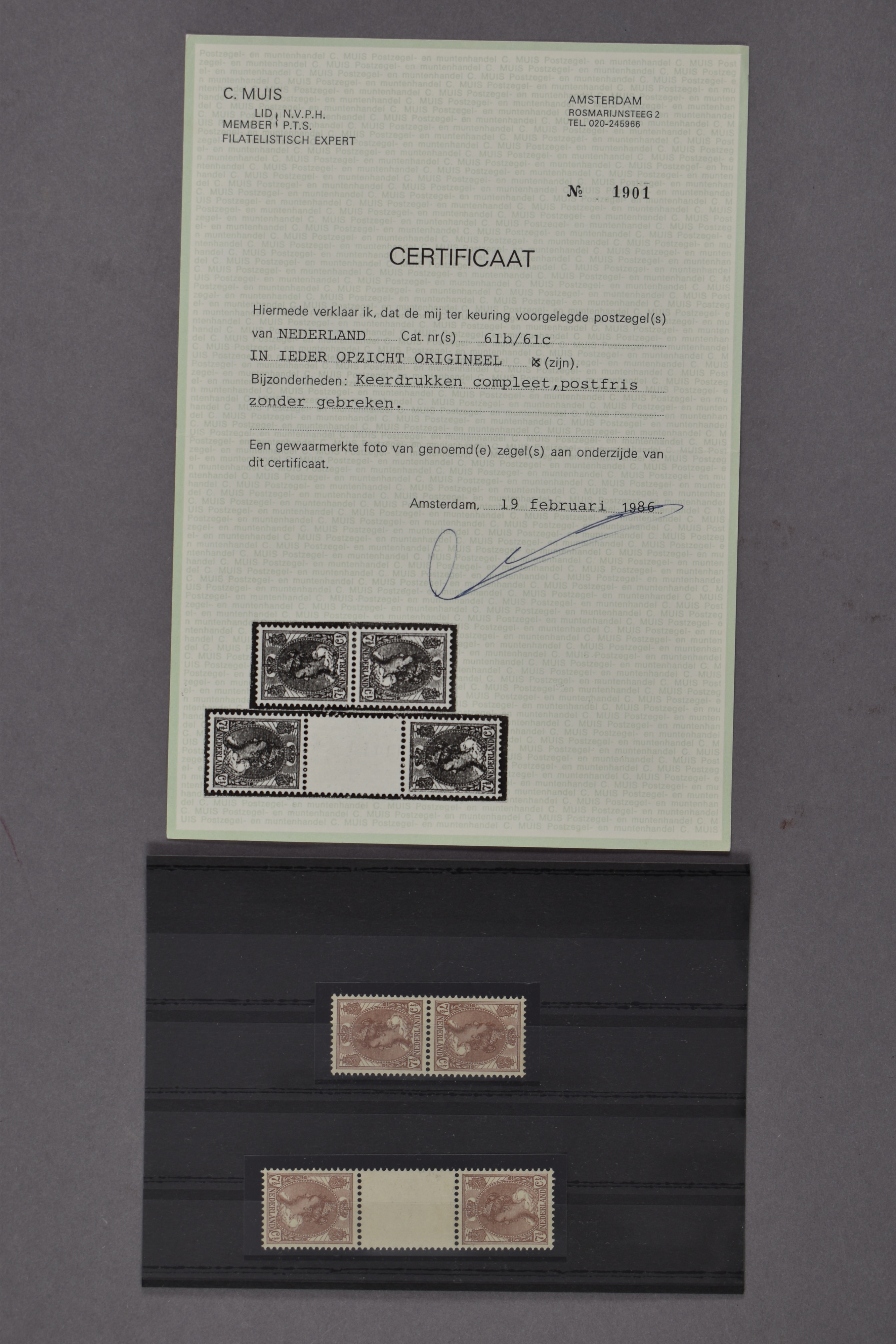61b/61c, Keerdrukken van de 7½ cent bruin zonder- en met tussenstrook, postfrisse prachtex. met certificaat Muis (1992) € 1000 (Image) (Image2)