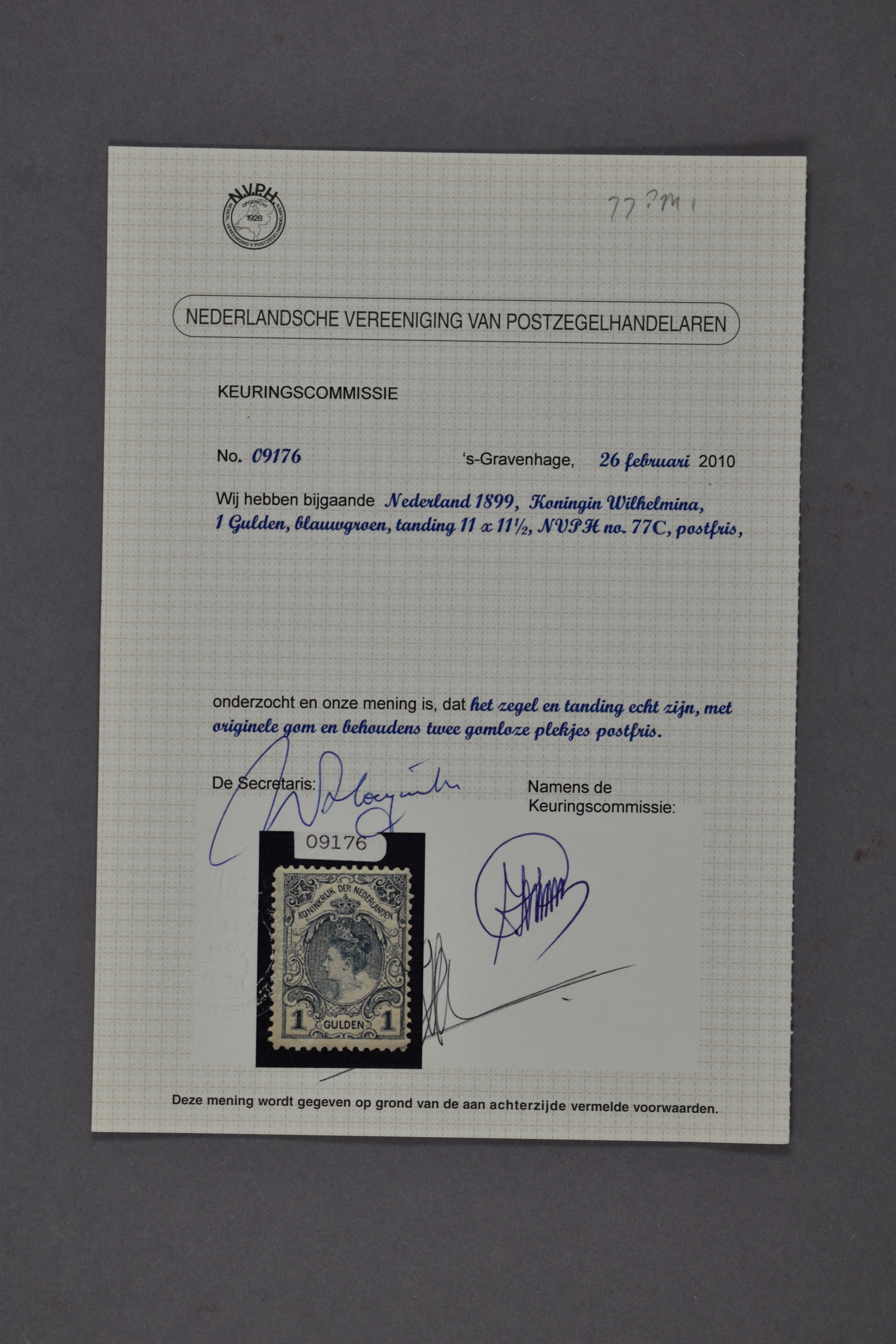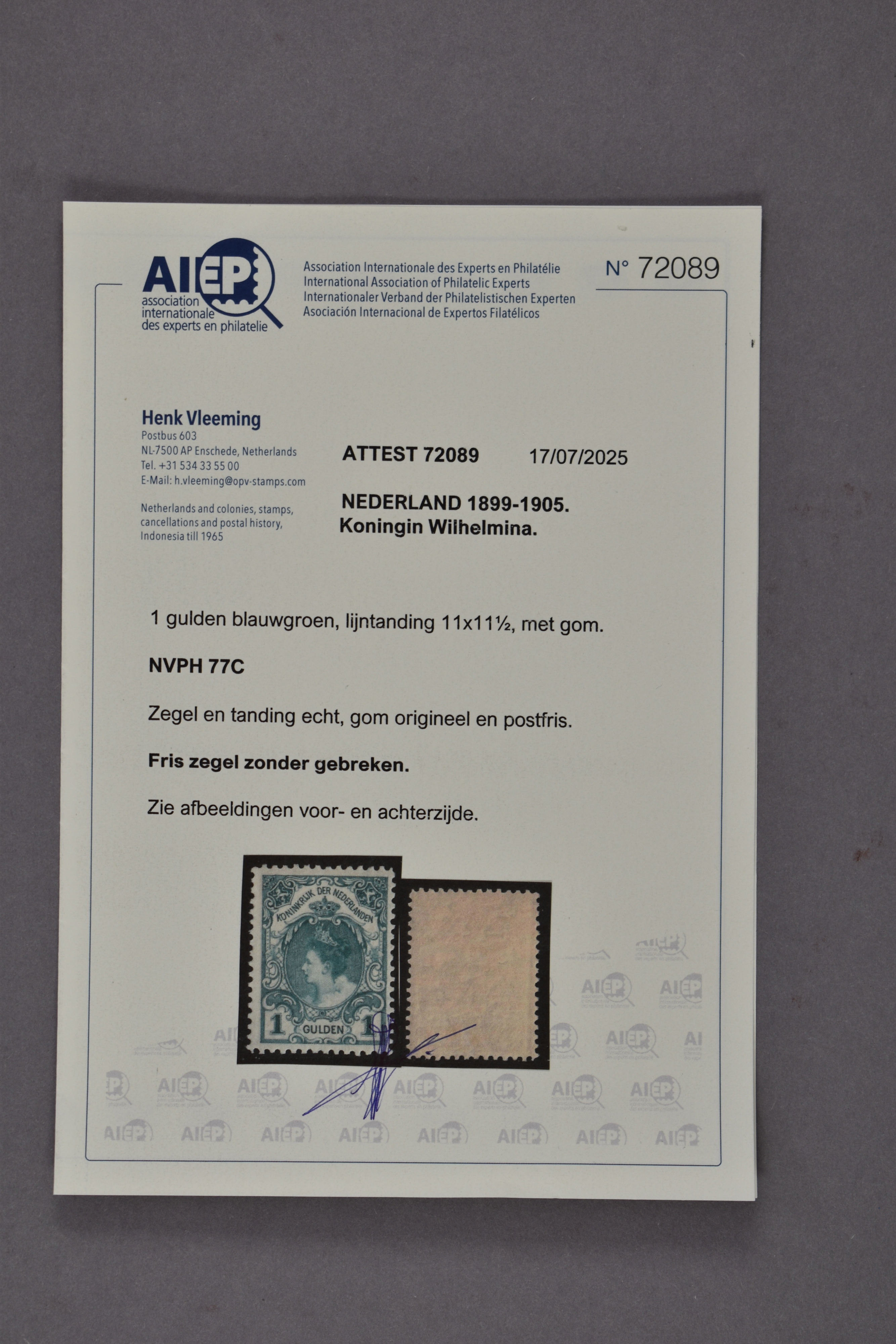 77C, 1 gulden blauwgroen, Lt. 11 x 11½, postfris prachtex. met certificaat Vleeming (2025) € 525 (Image) (Image2)