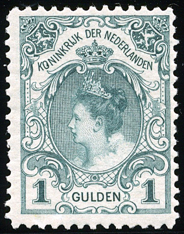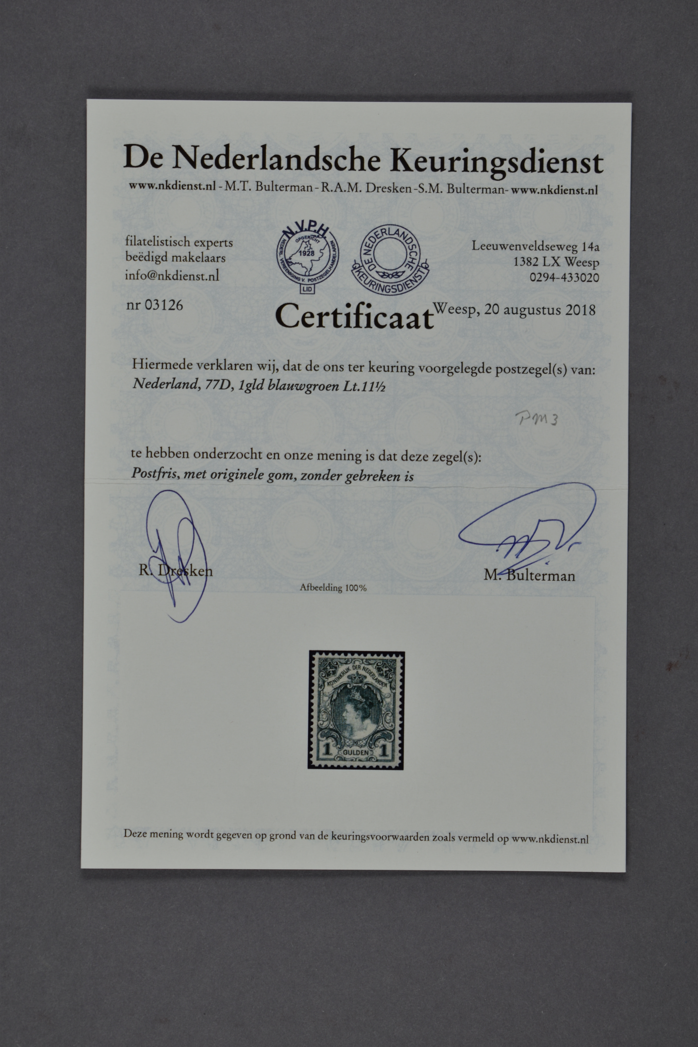 77D, 1 gulden blauwgroen, Lt. 11½, postfris prachtex. € 550 (Image)