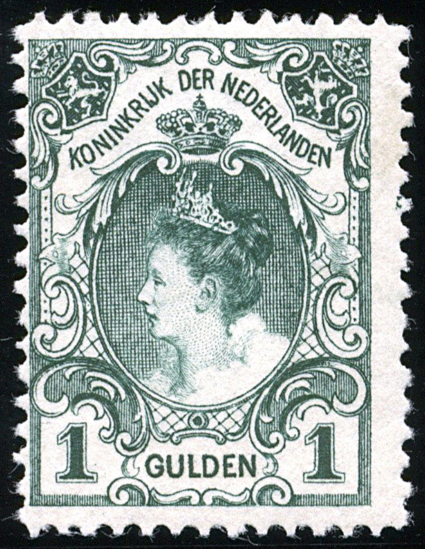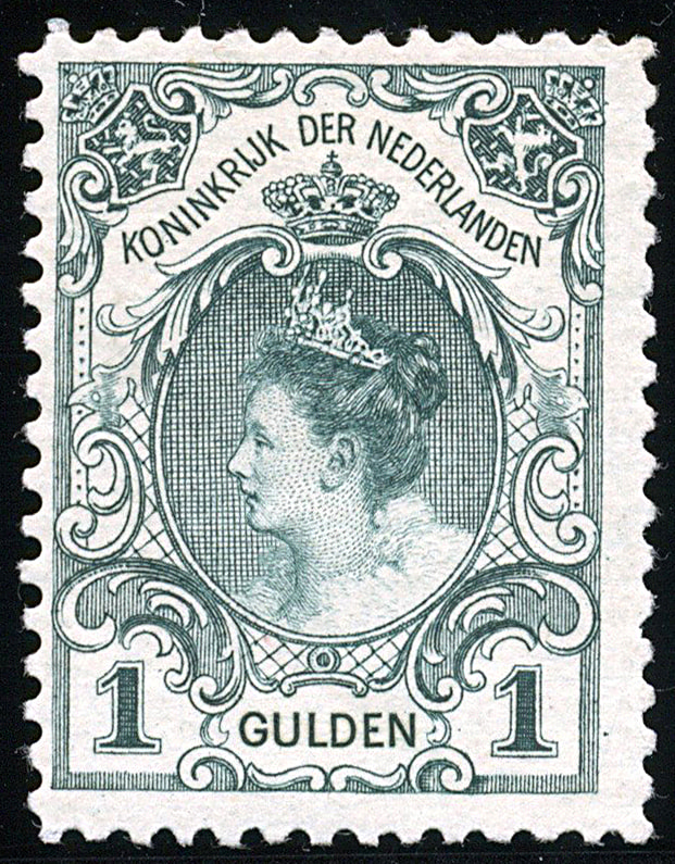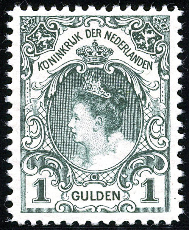 77C, 1 gulden blauwgroen, Lt.11 x 11½, postfris prachtex. met linker velrand. € 525 (Image)