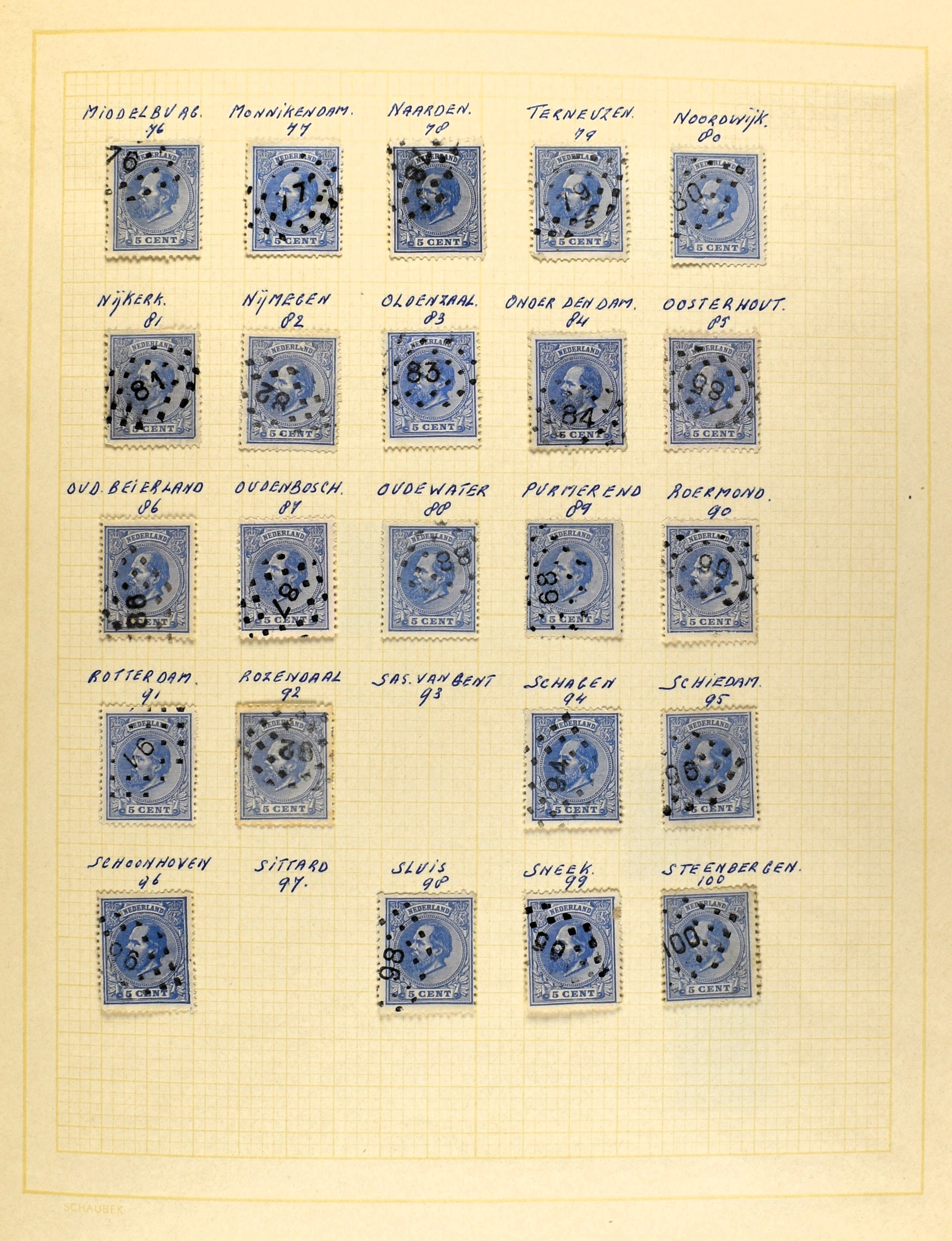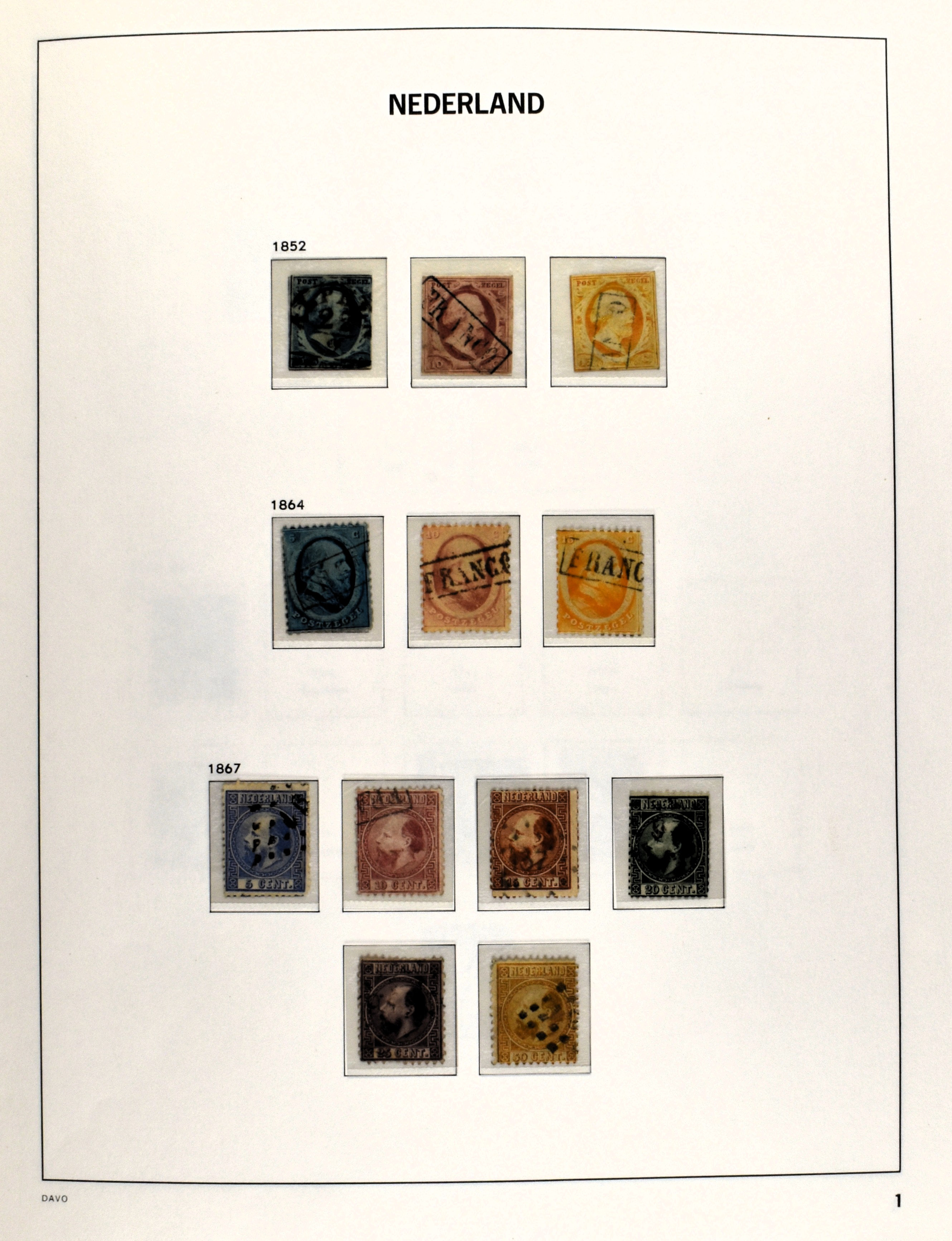 NEDERLAND EN O.G.D. 1852-2013, o/*/** verzameling in 10 albums en 3 mapjes waarbij Nederland tot 2003 met aardige afstempelingen (puntstempels) maar zonder echte 'top'-nummers, Nederlands-Indie met 149/59 en BK1/7, Curacao met 104/20 en