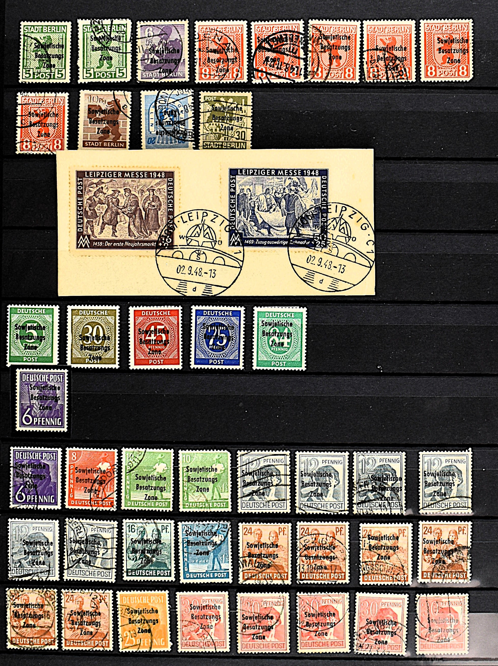 GERMANY, ALLIED-AND SOVIET OCCUPATION, BIZONE AND FRENCH ZONE, o/*/** in 1 album and 7 stock books with better numbers, better varieties and Plate flaws. Interesting lot with a high cat. value (Image) (Image2)