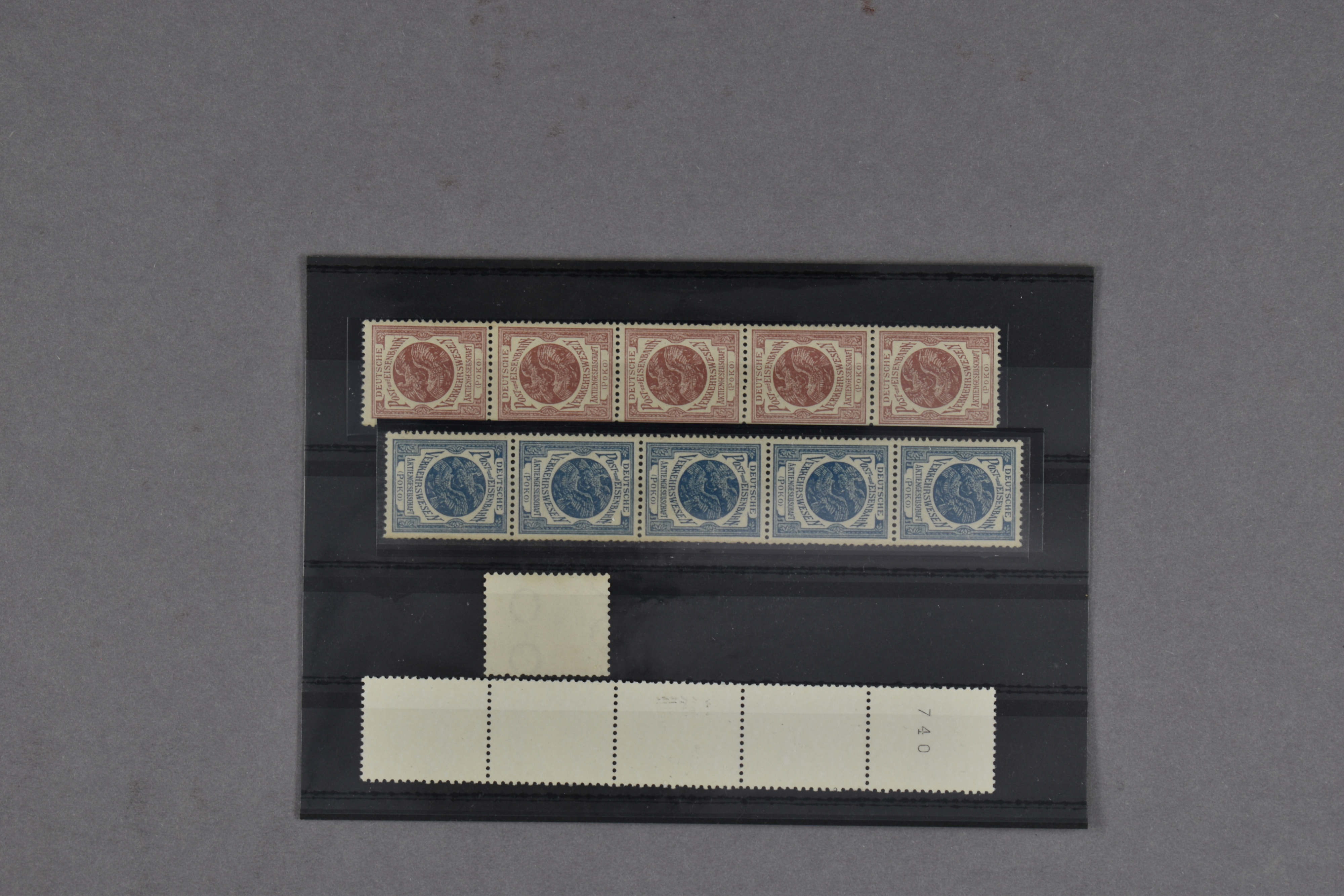 TESTZEGELS 1910, POKO zegels PK11 en PK14 in strippen van 5, TB7 uit automaat en TBN1 in strip van 5, postfrisse prachtex. € 395 (Image) (Image2)