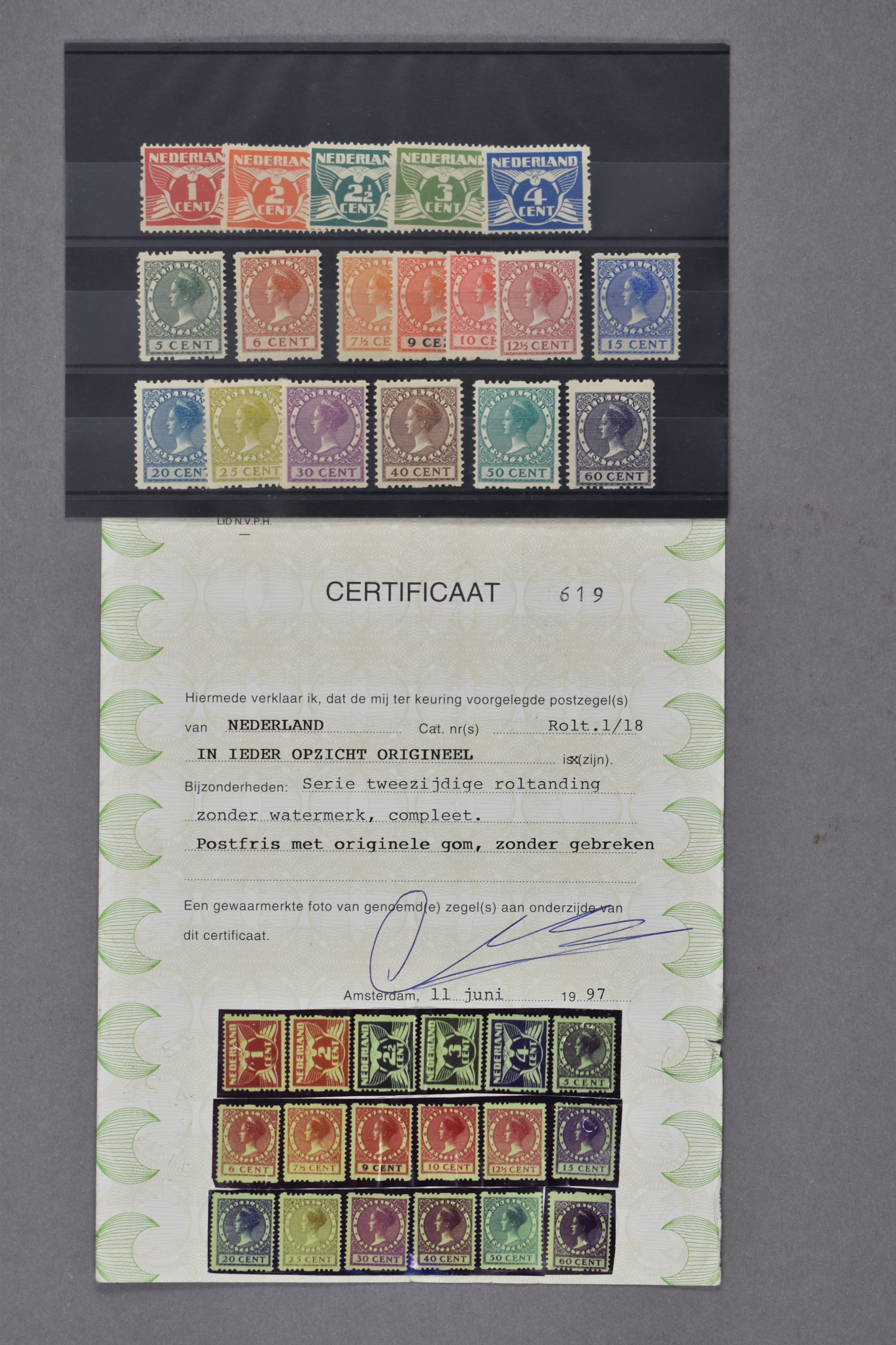 R1/R18, tweezijdige roltanding zonder watermerk, postfrisse prachtex. met certificaat Muis (1997) € 1615 (Image) (Image2)