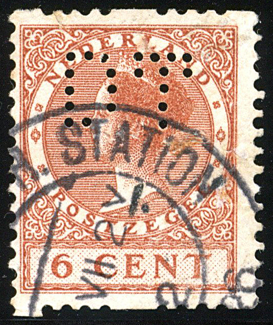 R7, 6 cent in tweezijdige roltanding met perfin DT met ontbrekend gaatje D11, gebruikt prachtex. € 130 (Image)