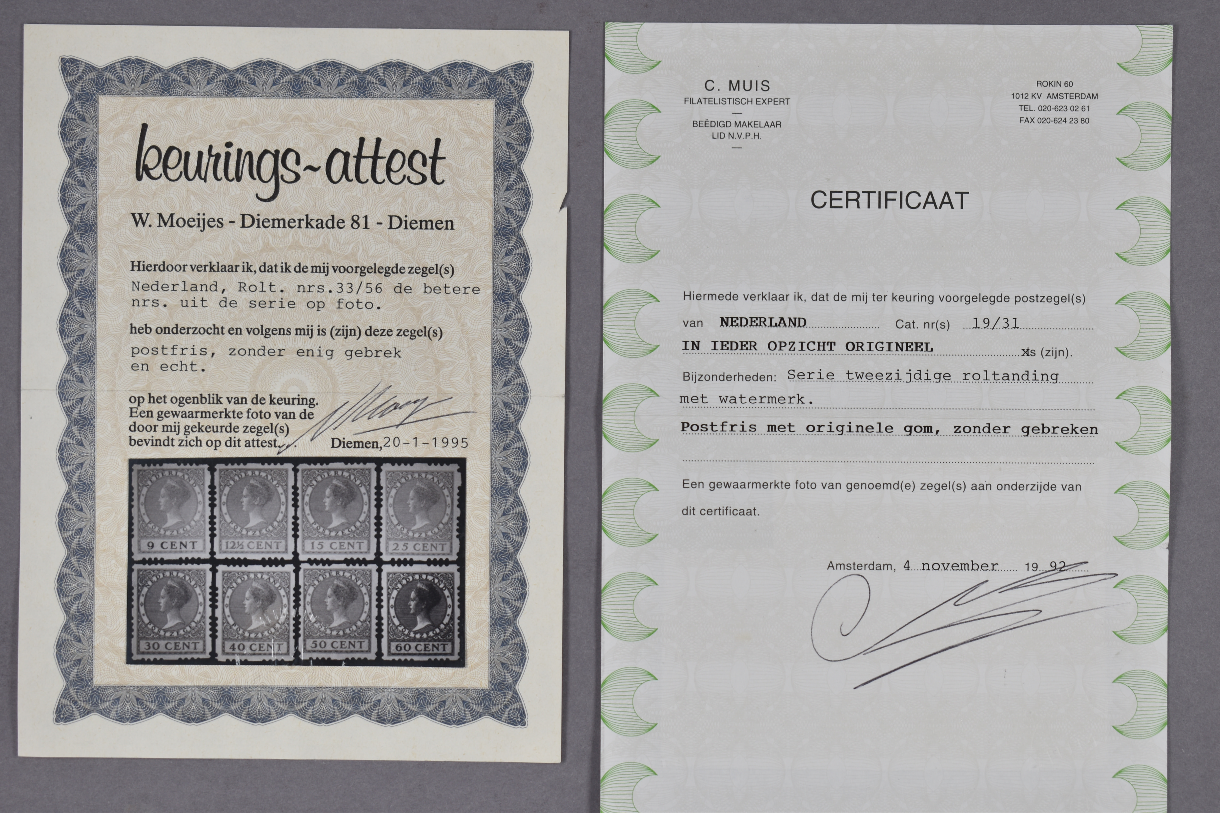 R19/R31 (cert. Muis 1992), R33/R56 (cert. Moeijes 1995) en R57/R70, complete postfrisse prachtex. € 1218 (Image) (Image2)