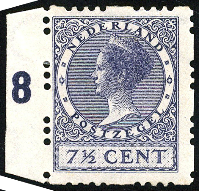 R32b, 7½ cent Driegaatsroltanding, ongebruikt prachtex. met linker velrandje met randnummer 8, afkomstig uit een vel met certificaat Muis (1989) Zeldzaam! € 5000 (Image) (Image2)