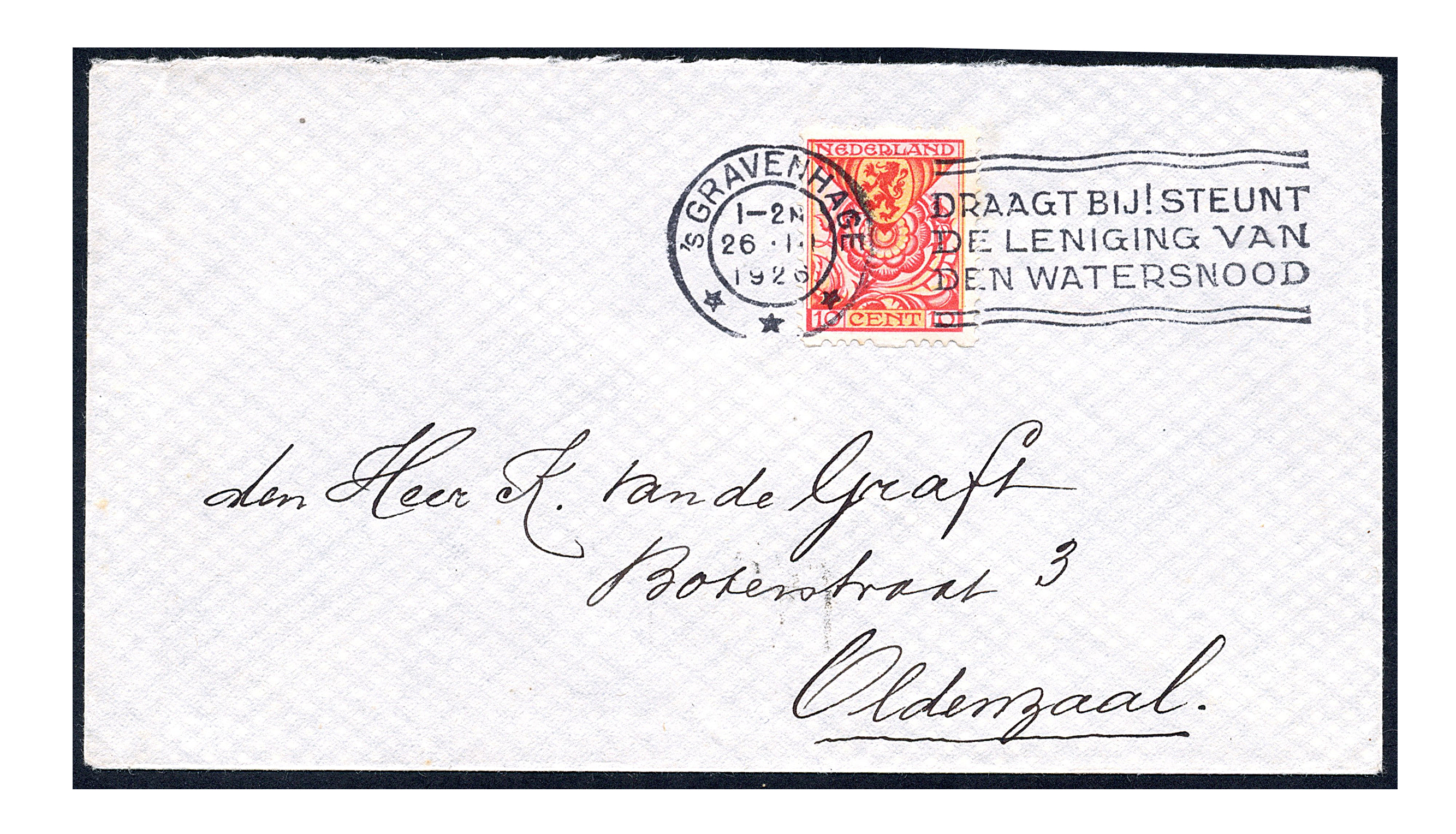 R73, 10 Cent Kind 1925 als enkelfrankering op envelop van 's Gravenhage 26-1.1-1926 naar Oldenzaal (Image)
