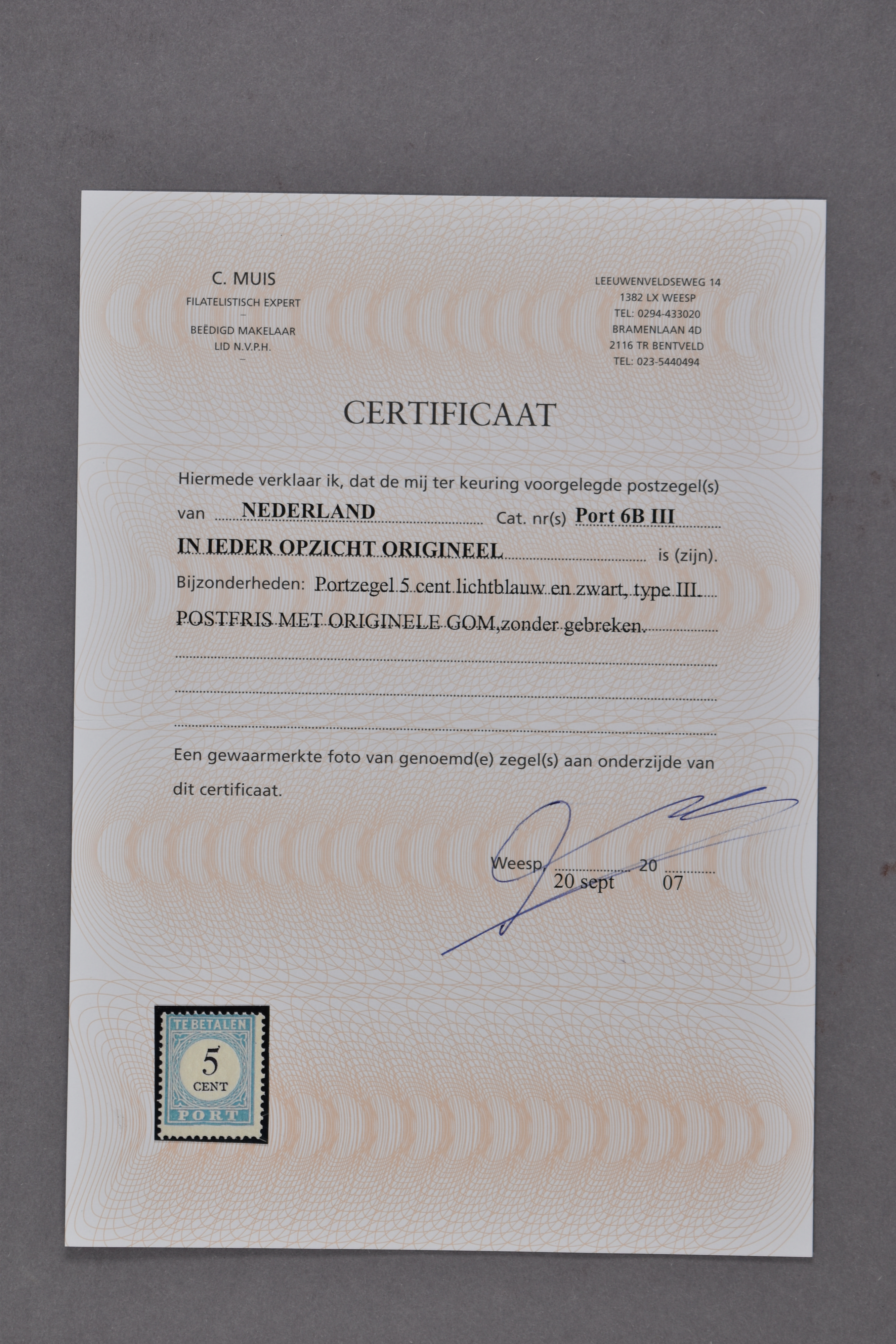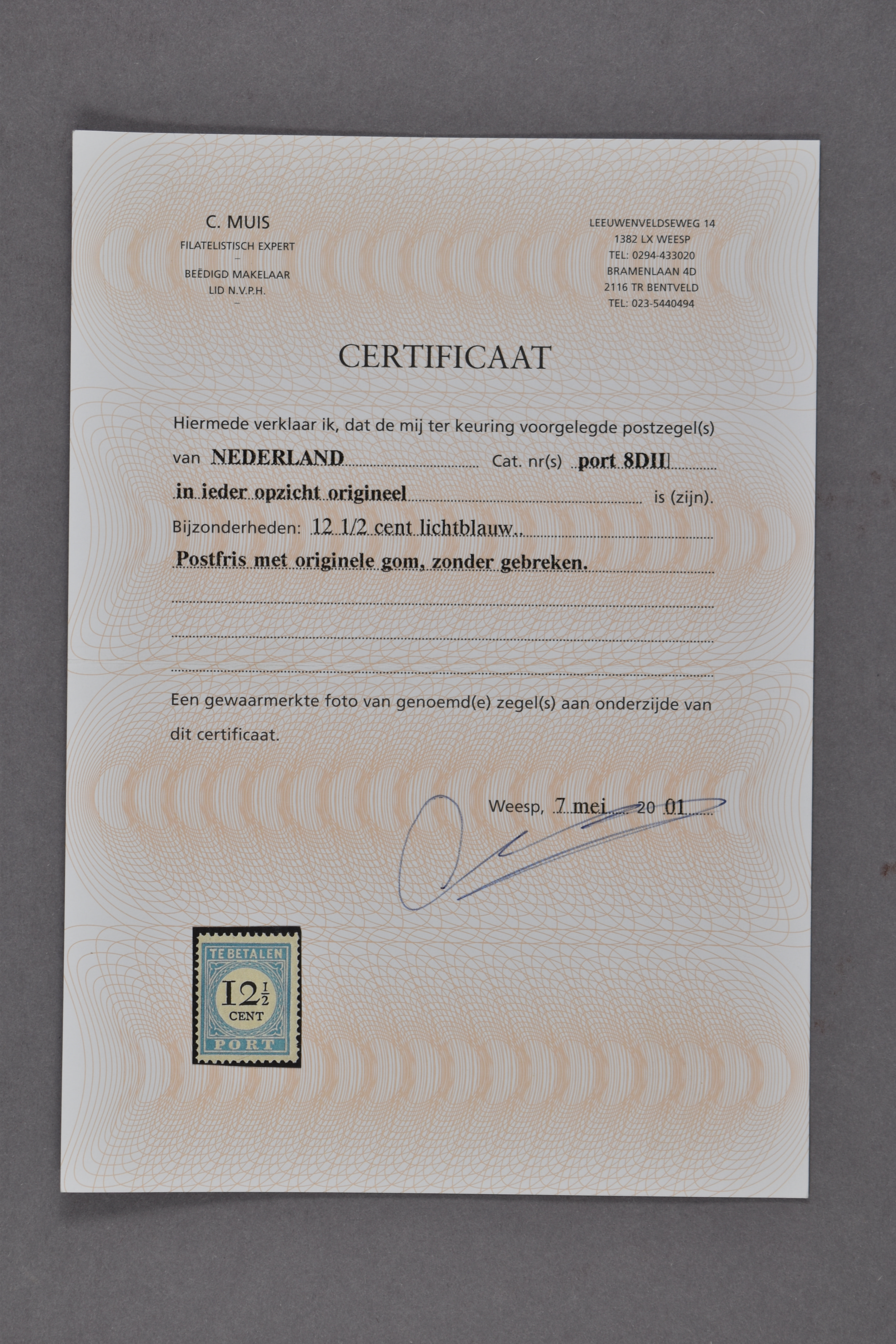 1307 nh imageP8DIII, 12½ cent lichtblauw en zwart, Kt. 12½, postfris prachtex. met certificaat Muis (2001) € 2500 (Image) (Image2)