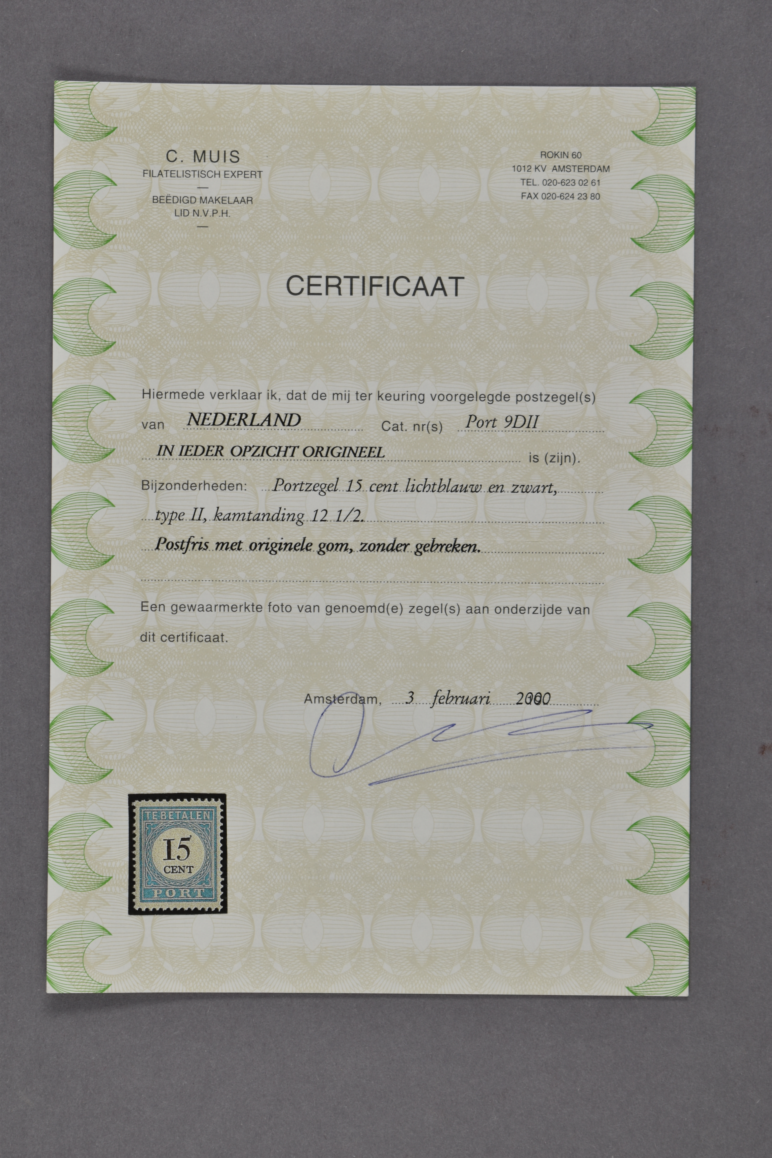 1308 nh imageP9DII, 15 cent lichtblauw en zwart, Kt. 12½, postfris prachtex. met certificaat Muis (2000) € 2500 (Image) (Image2)