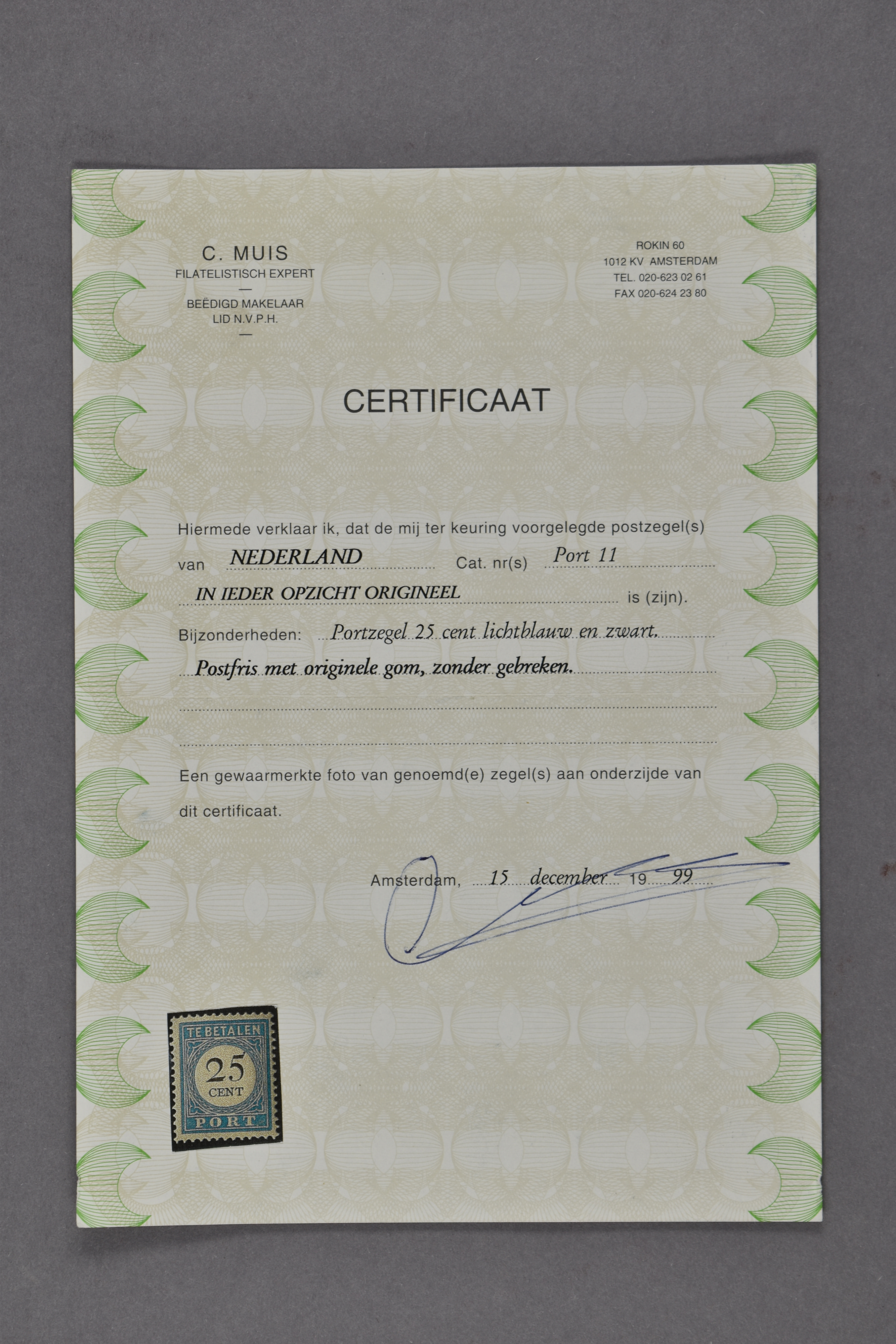 1310 nh imageP11DIII, 25 cent lichtblauw en zwart, Kt. 12½, postfris prachtex. met certificaat Muis (1999) € 6500 (Image) (Image2)