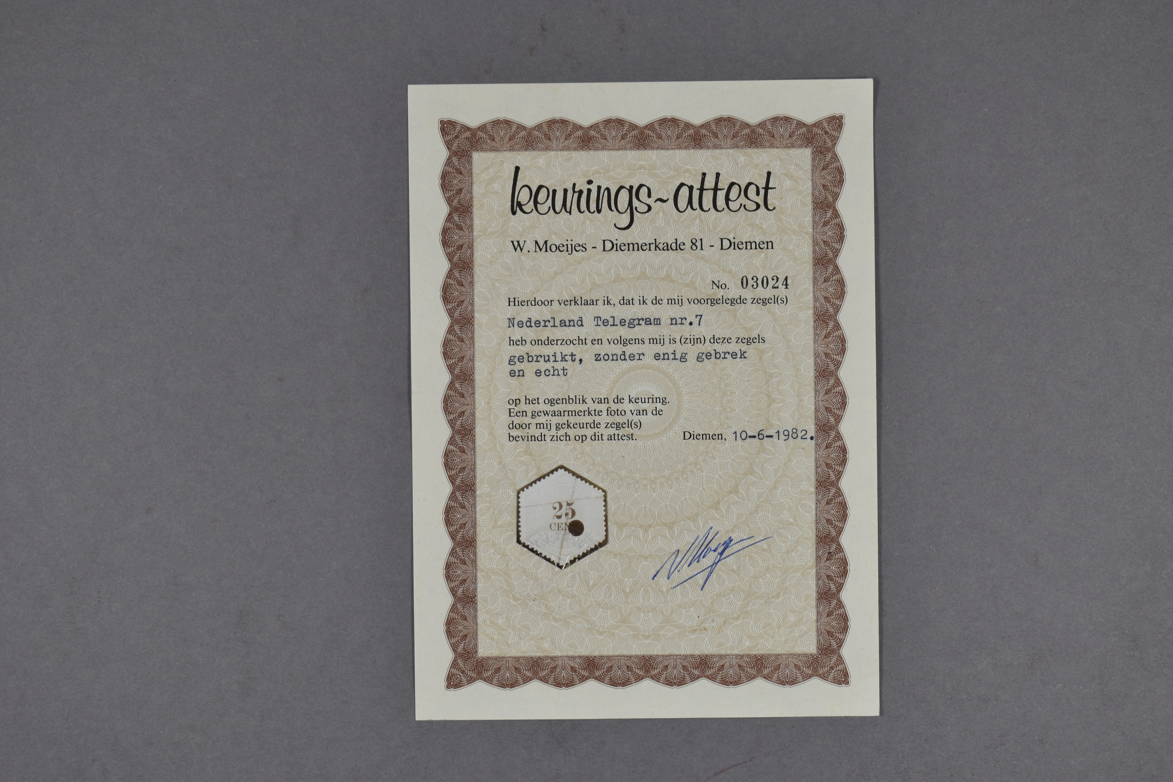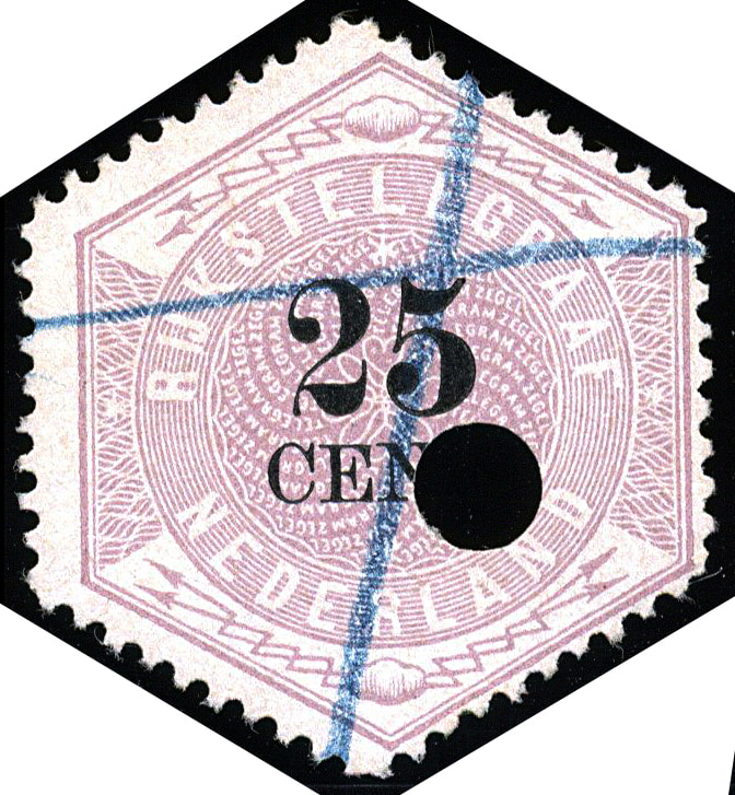 1353 o imageTG7, 25 cent lila en zwart, gebruikt prachtex. met certificaat Moeijes (1982) € 1900 (Image) (Image2)