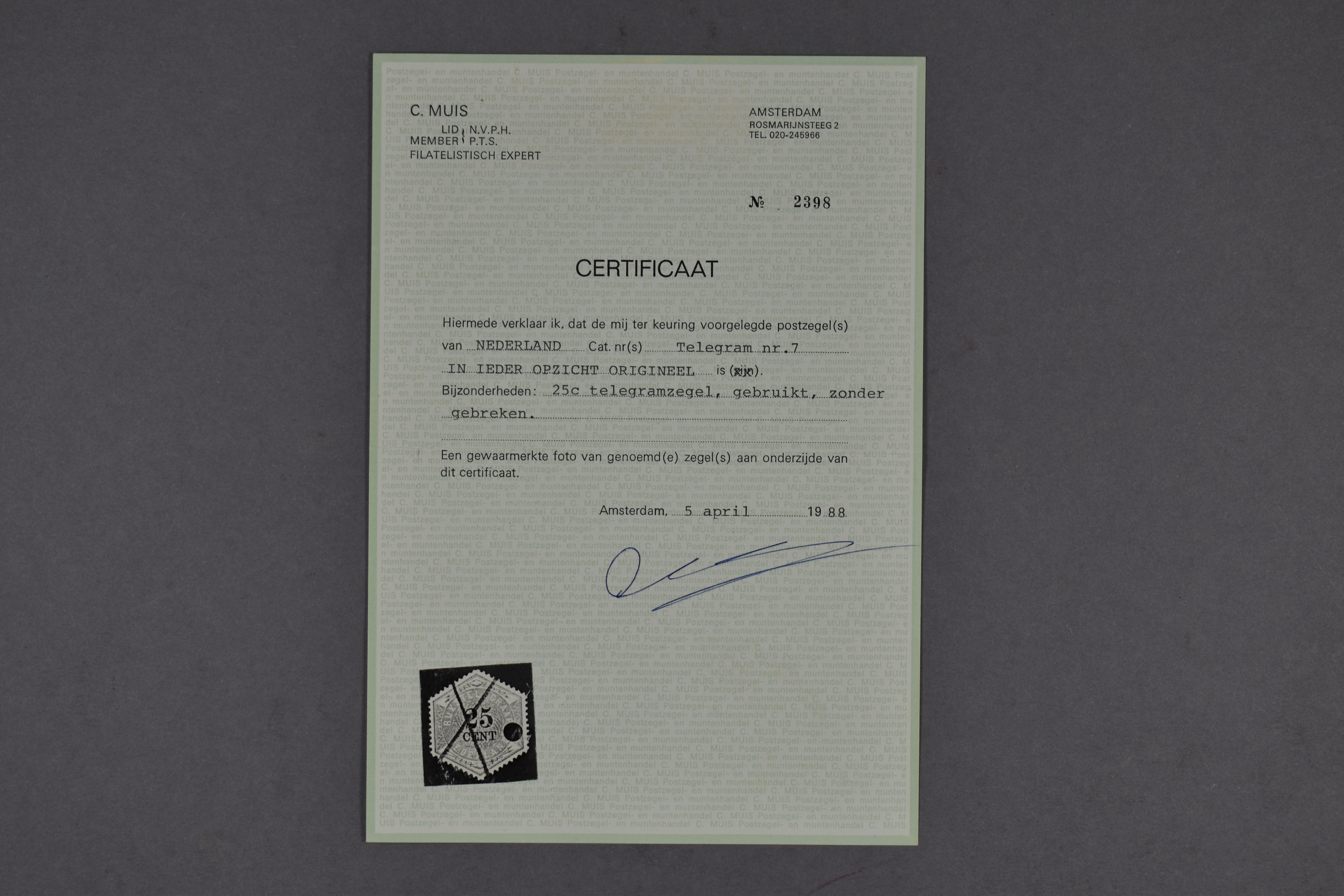 1354 o imageTG7, 25 cent lila en zwart, gebruikt prachtex. met certificaat Muis (1988) € 1900 (Image) (Image2)