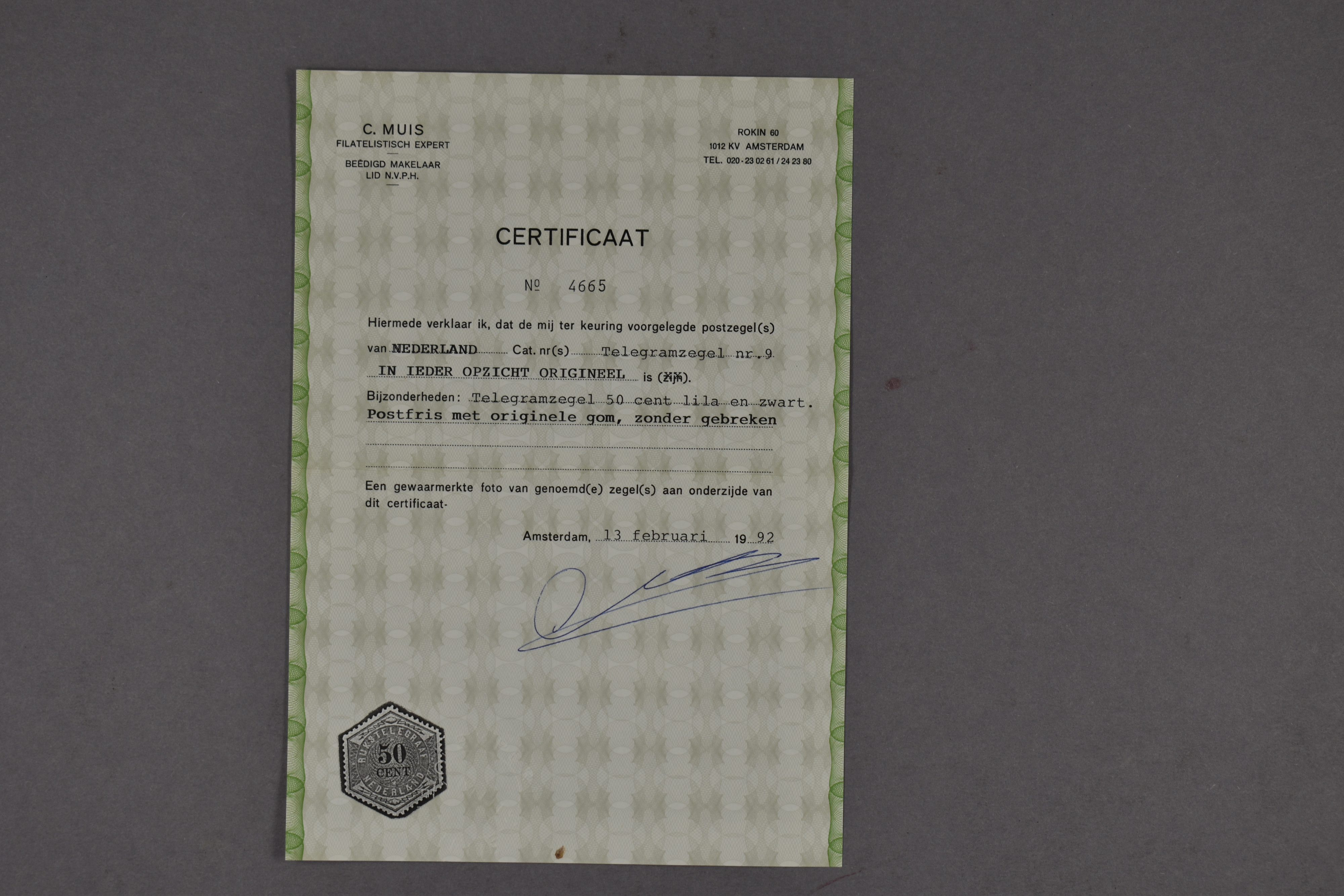 1357 nh imageTG9, 50 cent lila en zwart, postfris prachtex. met certificaat Muis (1992) € 2700 (Image) (Image2) (Image3)