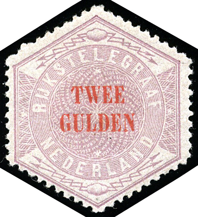 1362 og imageTG12, Twee gulden lila en rood, ongebruikt, vrijwel postfris prachtex., mooi gecentreerd en getand, helaas met roestpuntje. € 1800 (Image)
