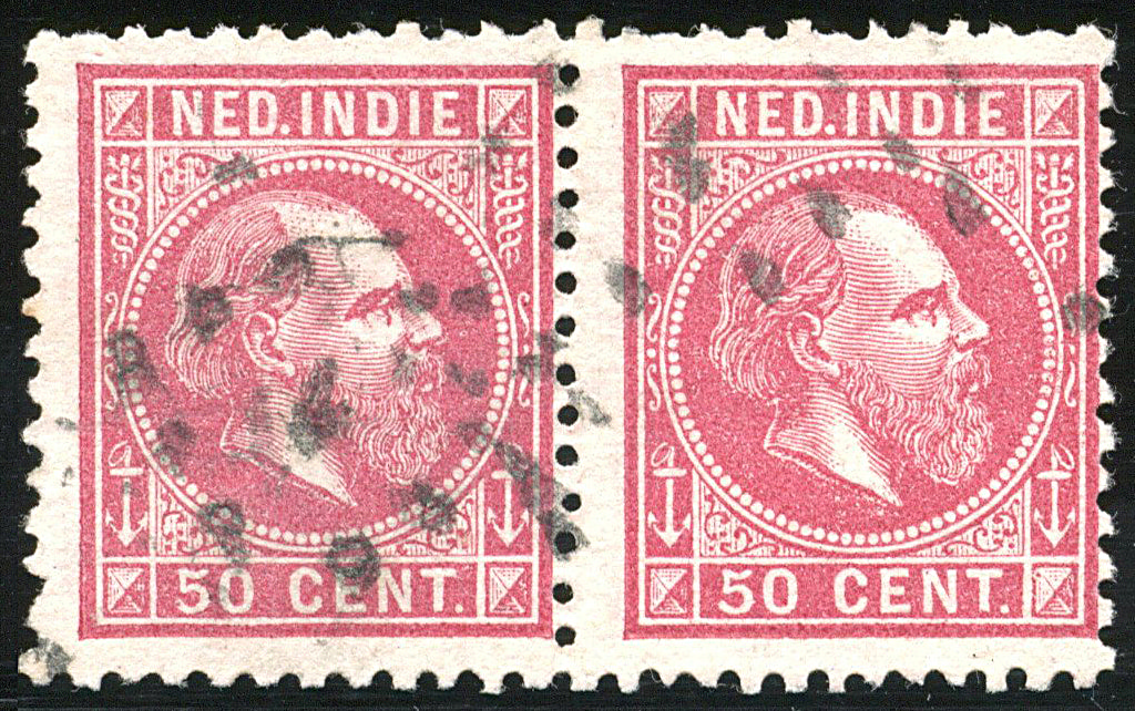 1370 o image15G + 15F, 50 cent in gecombineerde tanding 11½ : 12 + 12½ : 12, gebruikt prachtpaar. Schaars! € 275 (Image)