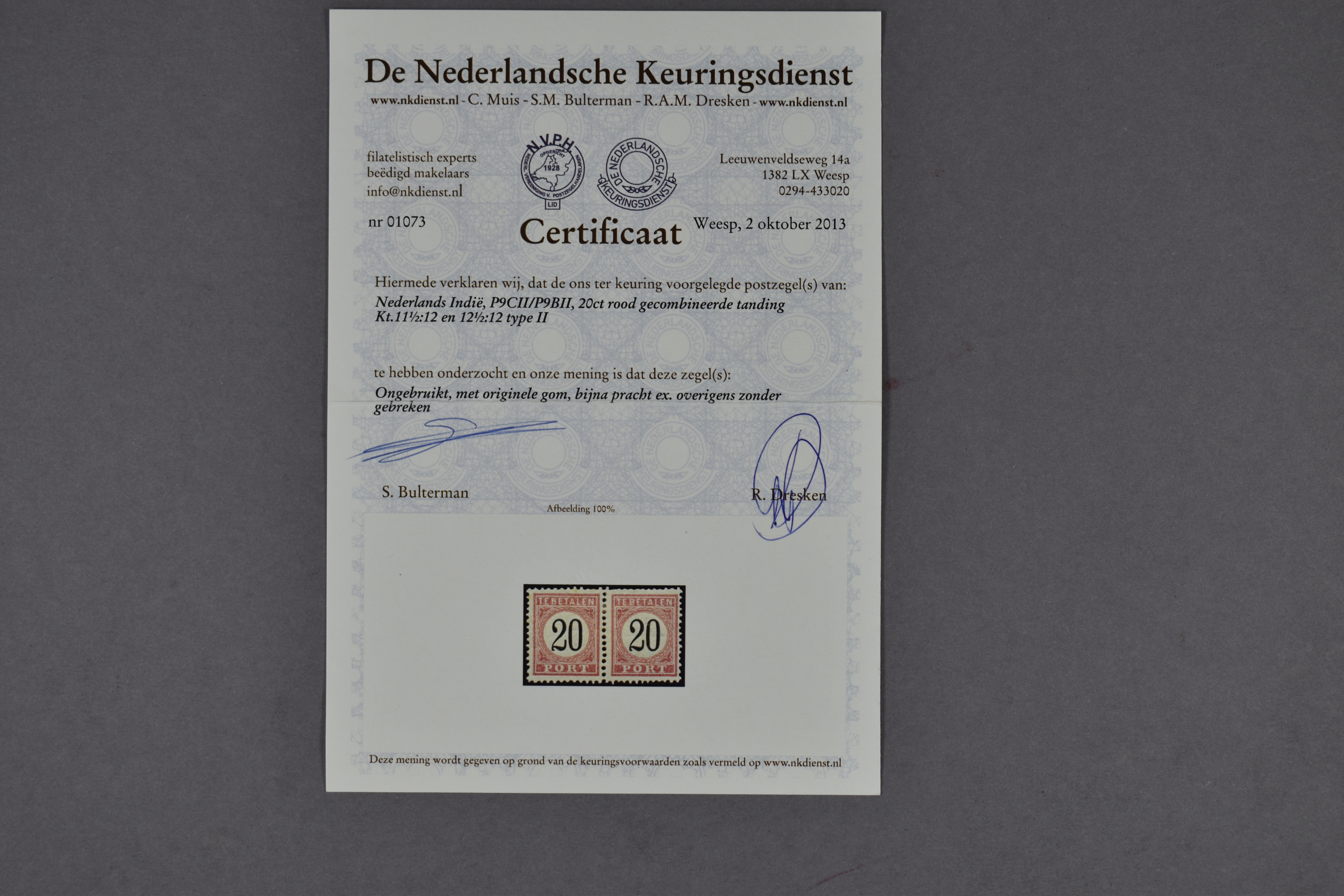 1392 og imageP9C+P9B, 20 cent rood, type II, in gecombineerde tanding 11½:12 + 12½:12, ongebruikt, vrijwel prachtpaar met certificaat NKD (2013) Cat: -,- (Image) (Image2)