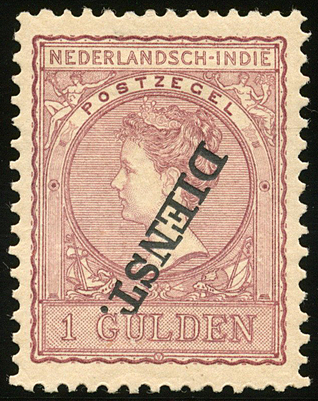 1393 og imageD26f, 1 gulden met opdrukafwijking 'DIENST. kopstaand', ongebruikt prachtex. met wat grote plakkerrest. Keur Evert Kroon, cert. Muis (2010). € 770 (Image) (Image2)