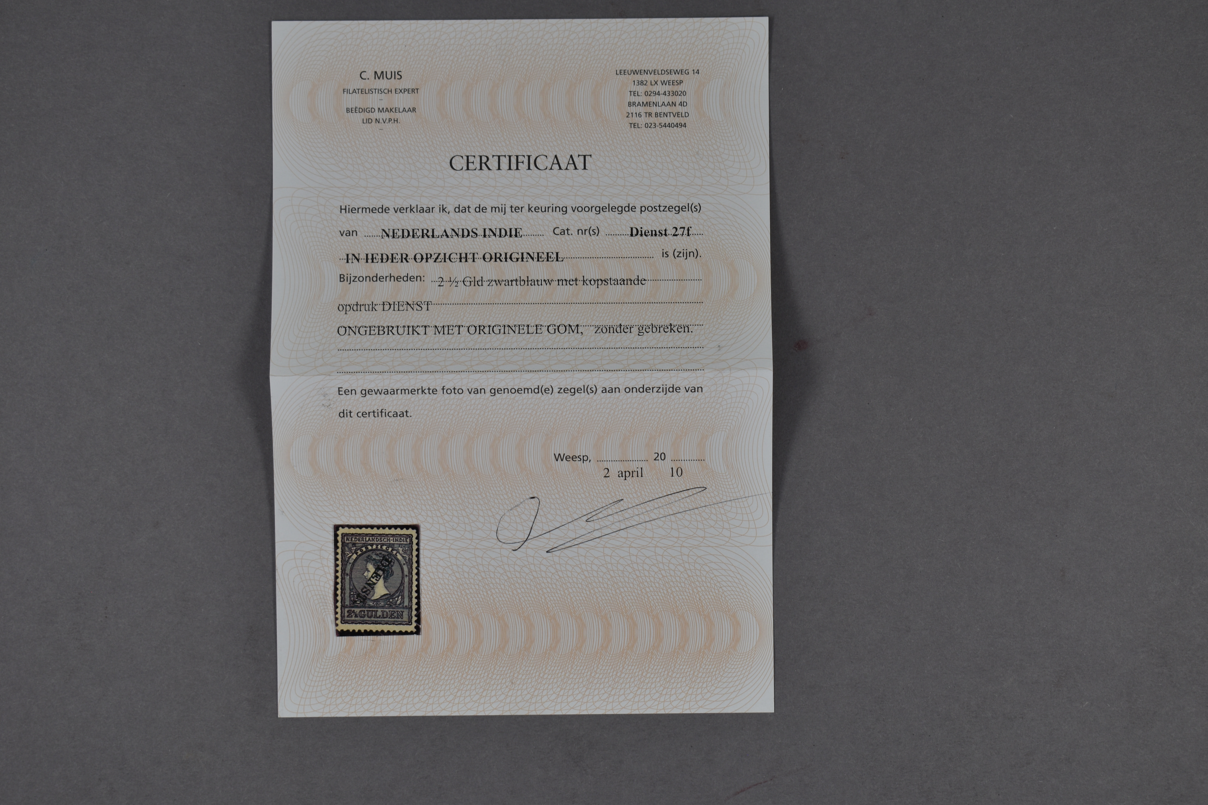 1394 og imageD27f, 2½ gulden met opdrukafwijking 'DIENST. kopstaand', ongebruikt prachtex. Cert. Muis (2010). € 330 (Image) (Image2)