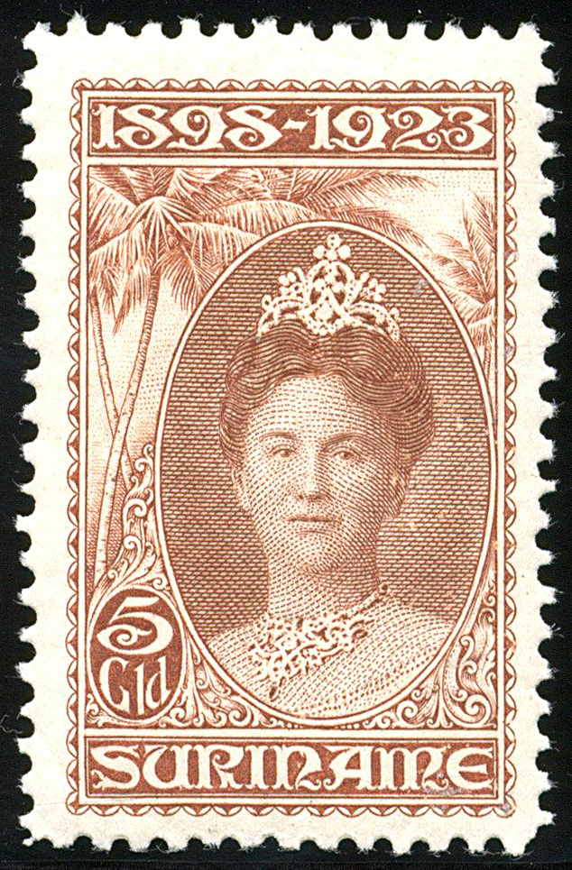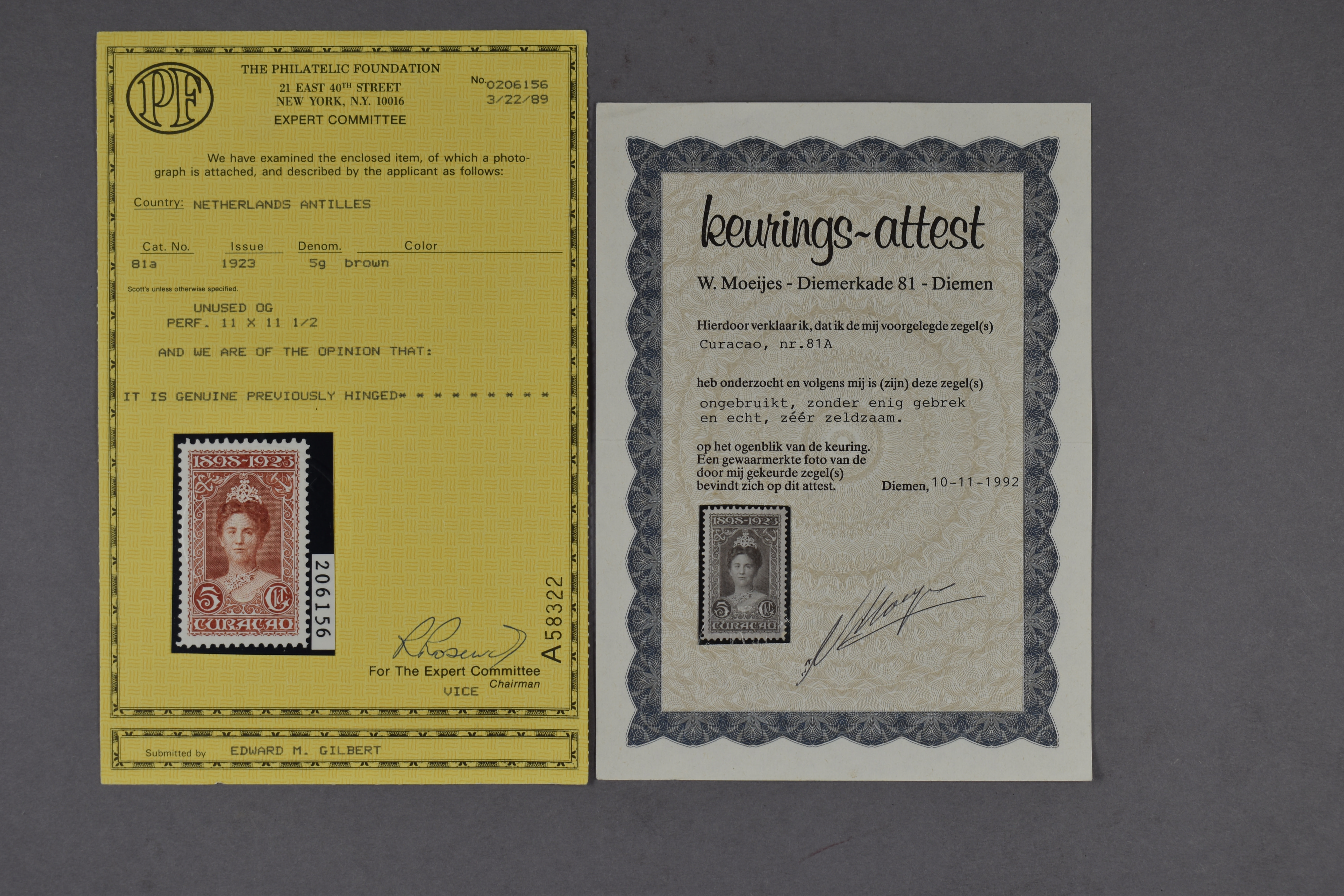 1397 og image81A, 5 gulden roodbruin Jubileum 1923, Lt. 11 x 11½, ongebruikt prachtex. met certificaten Phil.Foundation (1989) en Moeijes (1992) € 750 (Image) (Image2)