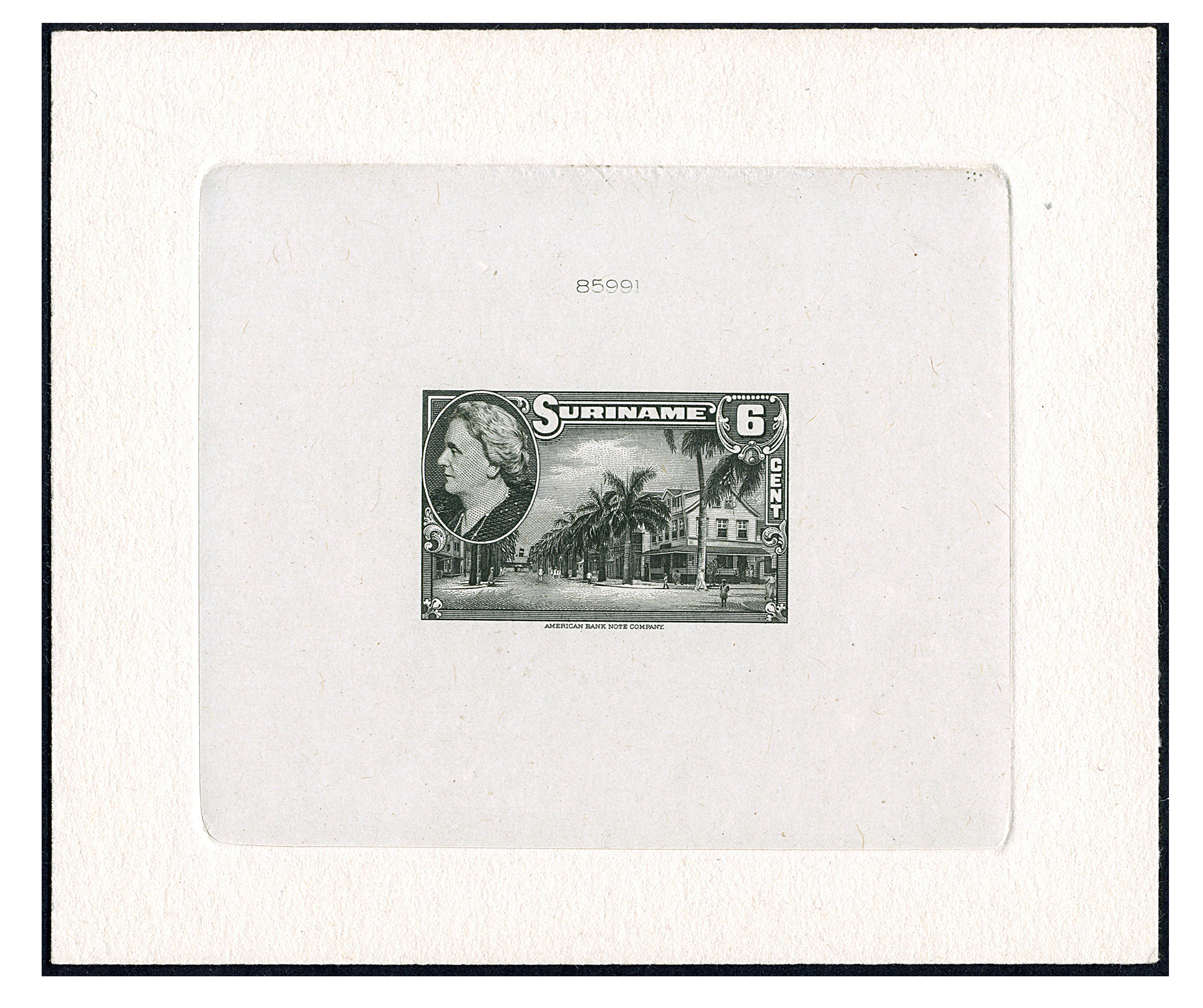 1404 (og) imagePC70, Stempelproef van de 6 cent in zwart, ongetand in velletje op kartonnetje met opstaande randen, prachtex. Hfl. 350 (Image)