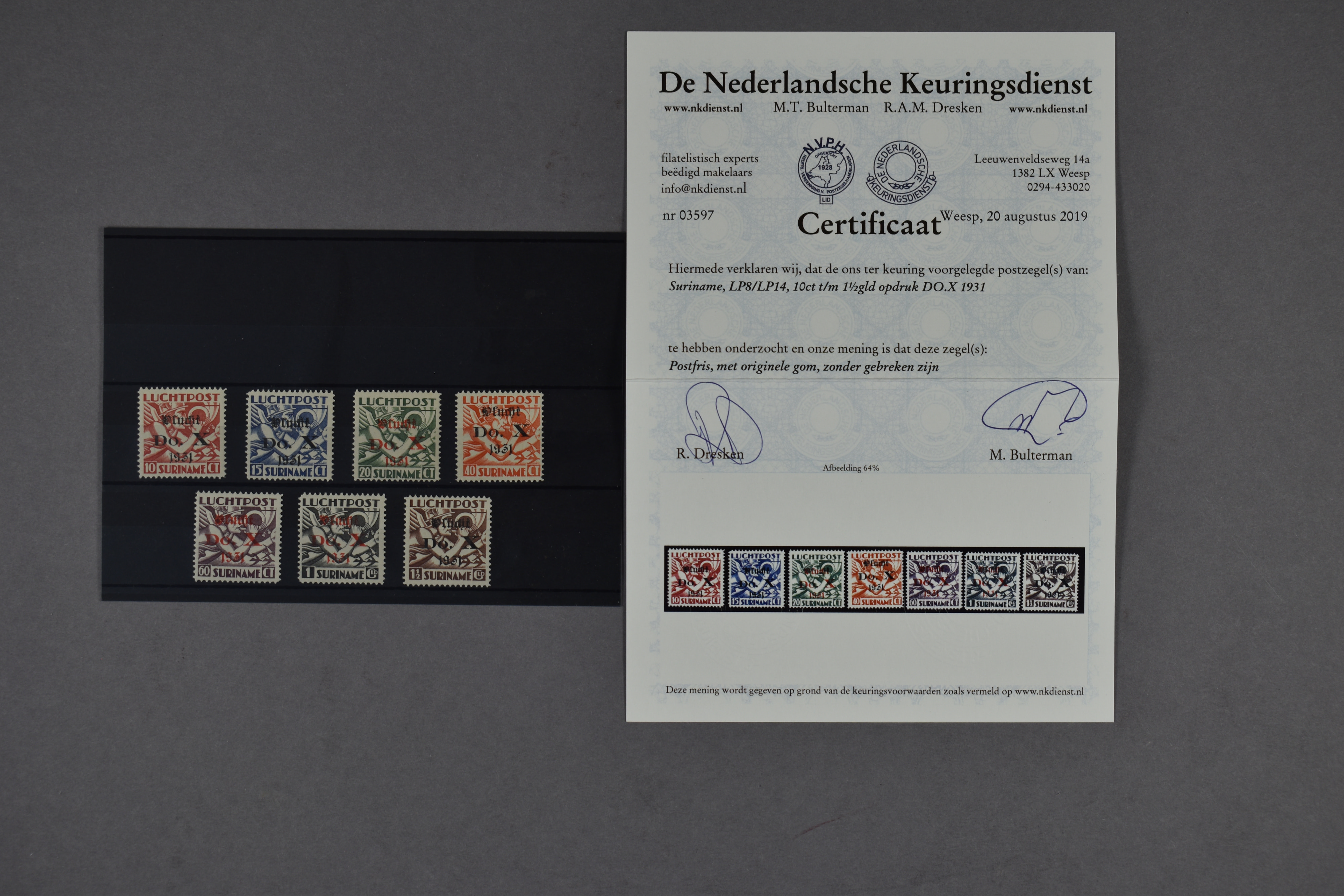 1408 nh imageLP8/LP14, 10 cent t/m 1½ gulden met opdruk 'Vlucht Do. X 1931', postfrisse prachtserie. Cert. NKD (2019). € 1000 (Image) (Image2)