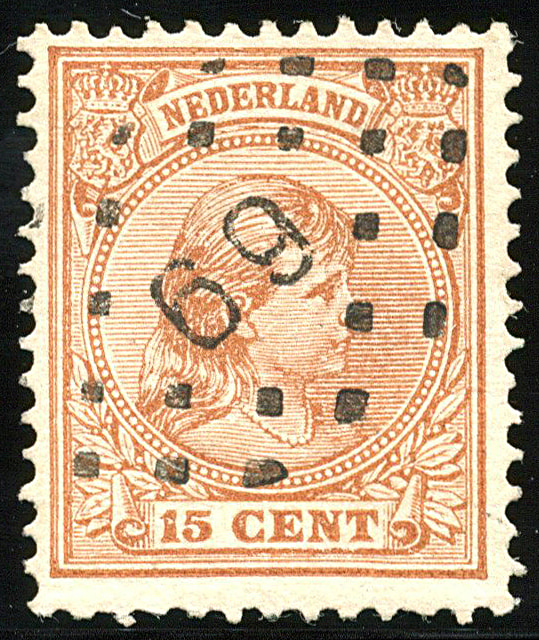 69 = De Lemmer op 15 cent nr. 39. Zeer fraai ex. met superbe afst. € 200 (Image)