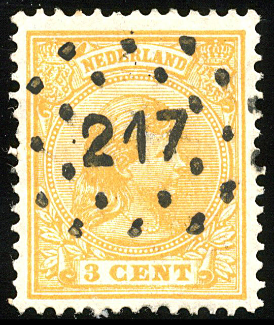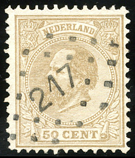 217 = Voorburg op 50 cent nr. 27. Prachtex. met superbe afst. (Image)