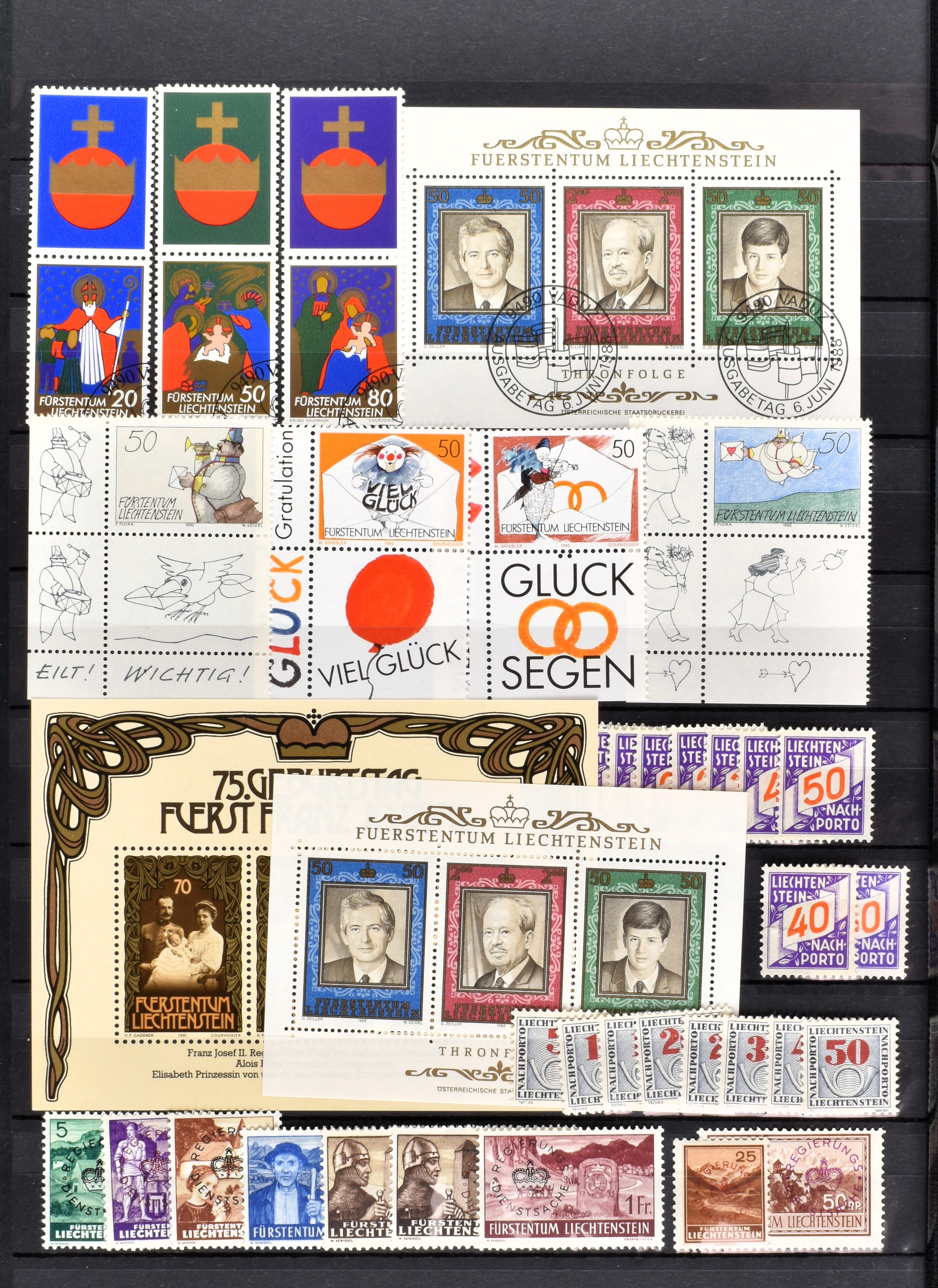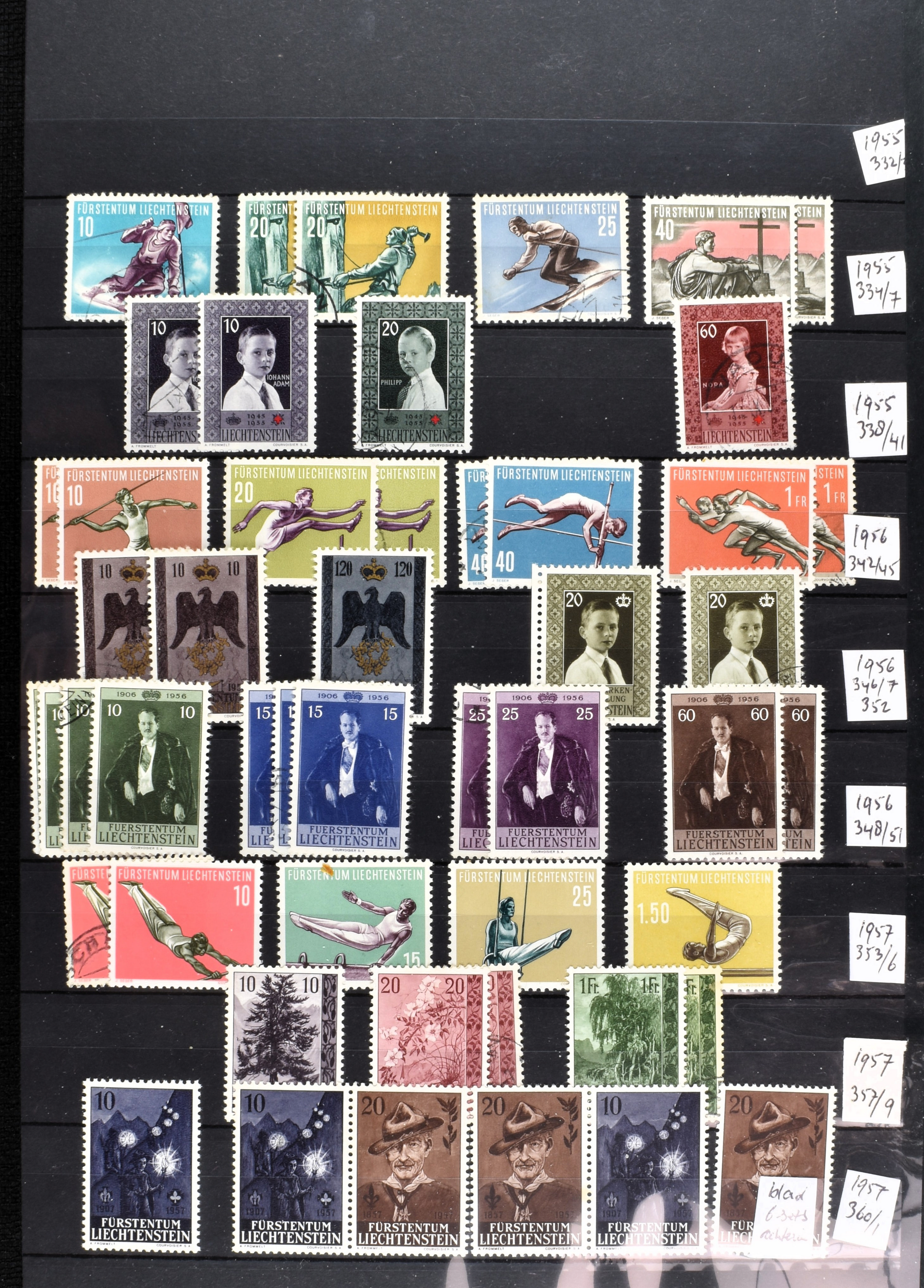 LIECHTENSTEIN 1912-2009, o/*/** in 5 stock books with good numbers and sets, among others: 46B/52B, 48BUe, 78/81**(2), 82/86**, 149, 257/66, m/s, blocks, Officials, etc., etc., high cat. value (Image) (Image2)